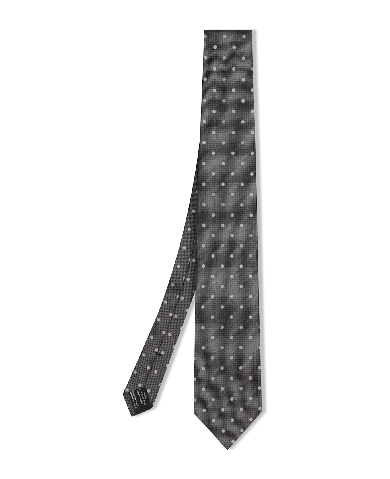 This elegant TOM FORD tie features a white polka dot pattern on a dark grey background, adding a distinguished touch to any formal attire. Composition: 100% Silk
