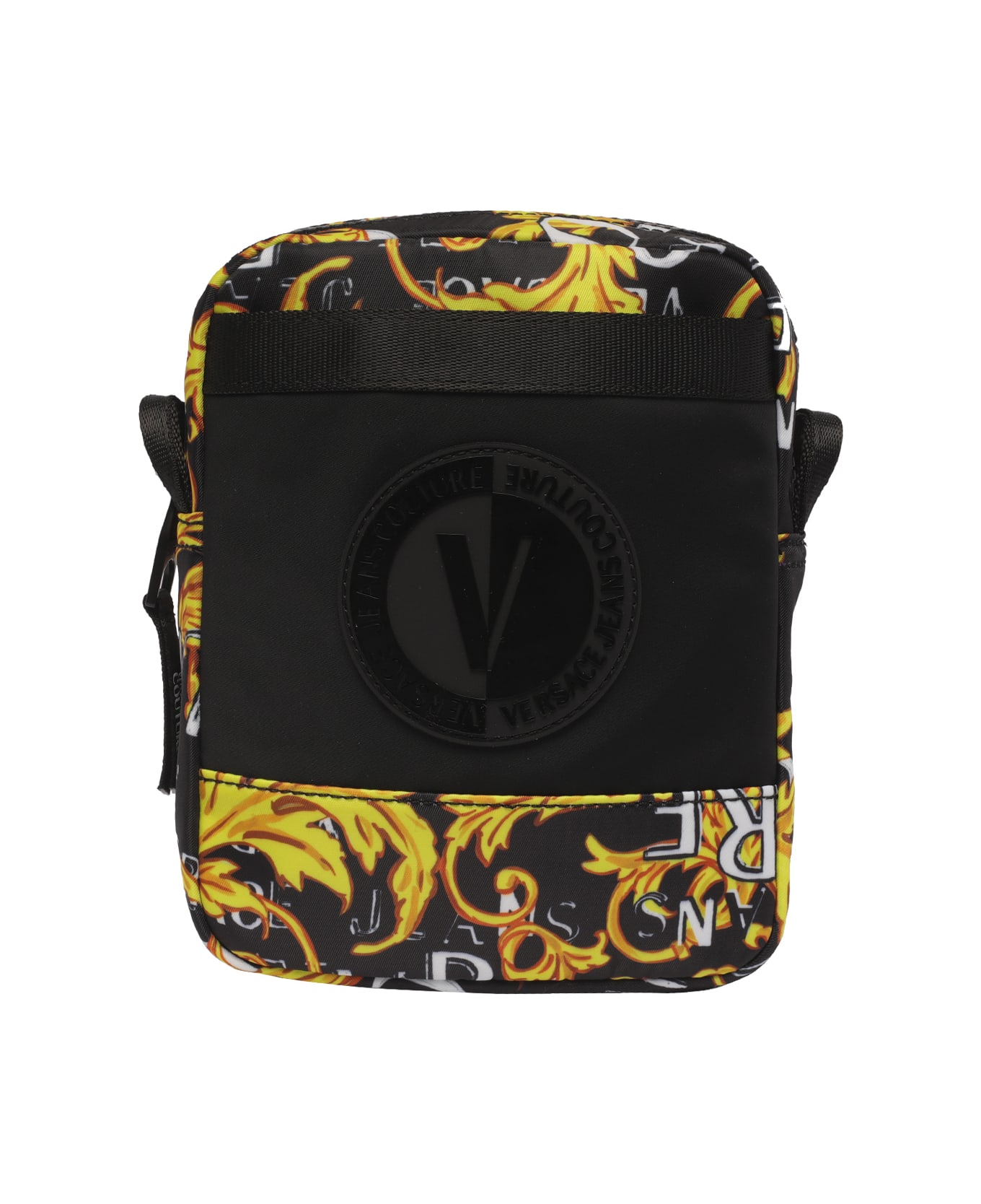 Versace Jeans Couture, black V-Emblem crossbody bag with zip closure, inner and external open pocket , adjustable and removable shoulder strap, Couture logo printed Composition: 100% Polyester