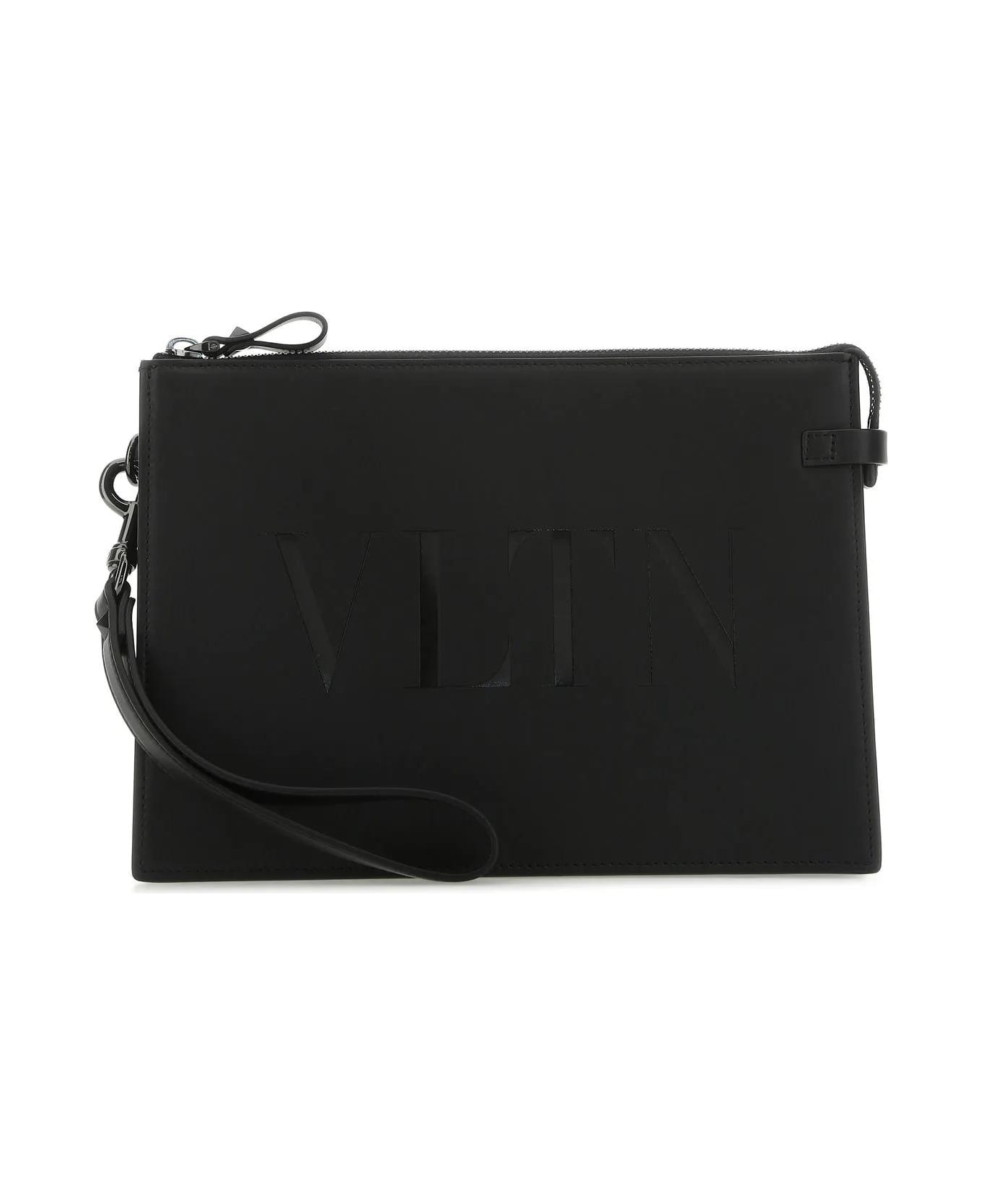 Clutch realized in smooth calf leather characterized by tonal VLTN printed logo on the front and embossed logo at the back. - Detachable tonal leather handle - Zip closure - Lined interior with a patch pocket and six credit card slots Composition: Exterior: 100% Calf Lining: 100% Fabric Finishes: Gunmetal