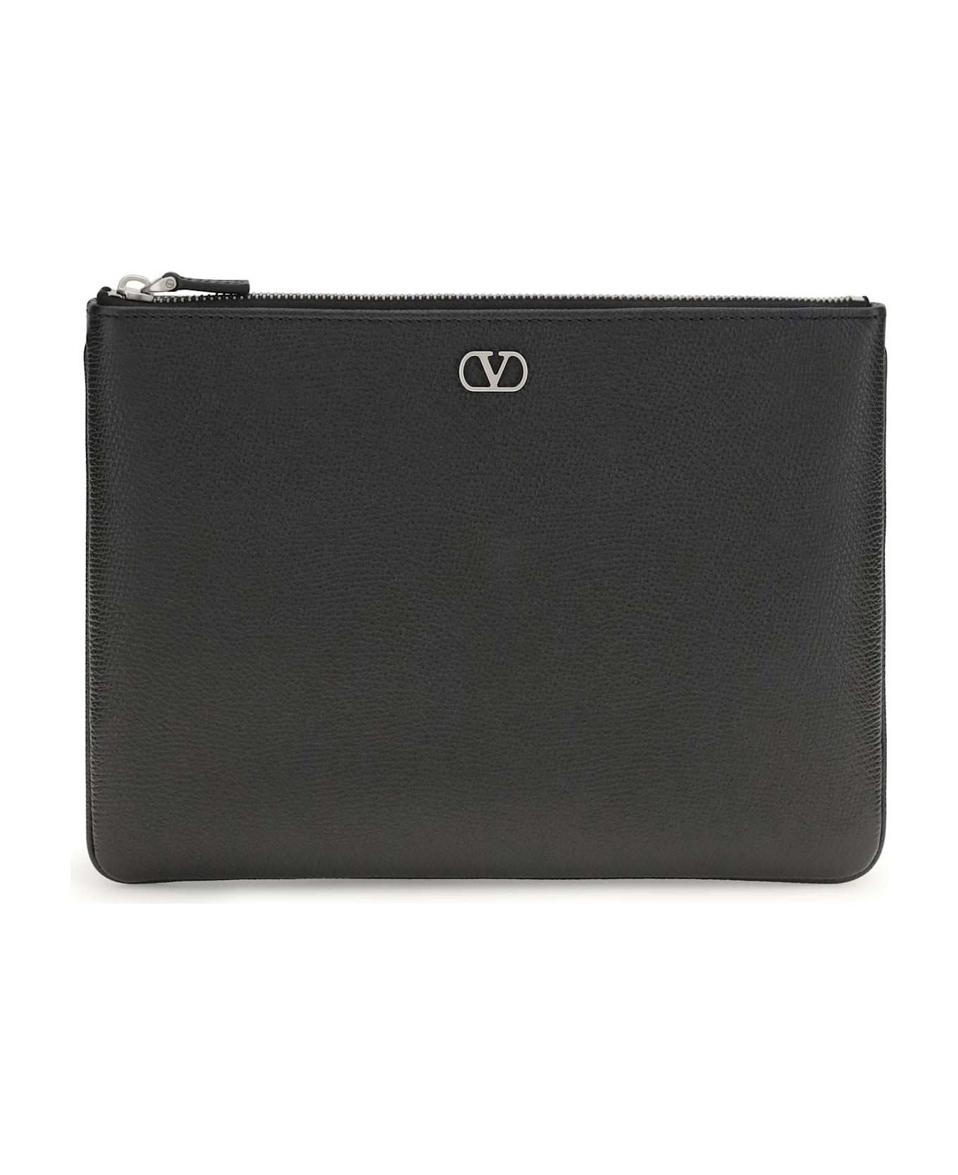 The vlogo signature pouch by balenciaga is an elegant and practical accessory made from garnet calfskin. featuring a zip closure, it showcases the distinctive vlogo signature accessory and metal parts with an antique palladium finish. the interior is lined with soft nappa leather and has three card slots, offering functionality and luxury in a compact and sophisticated design. perfect for organizing small items in style.