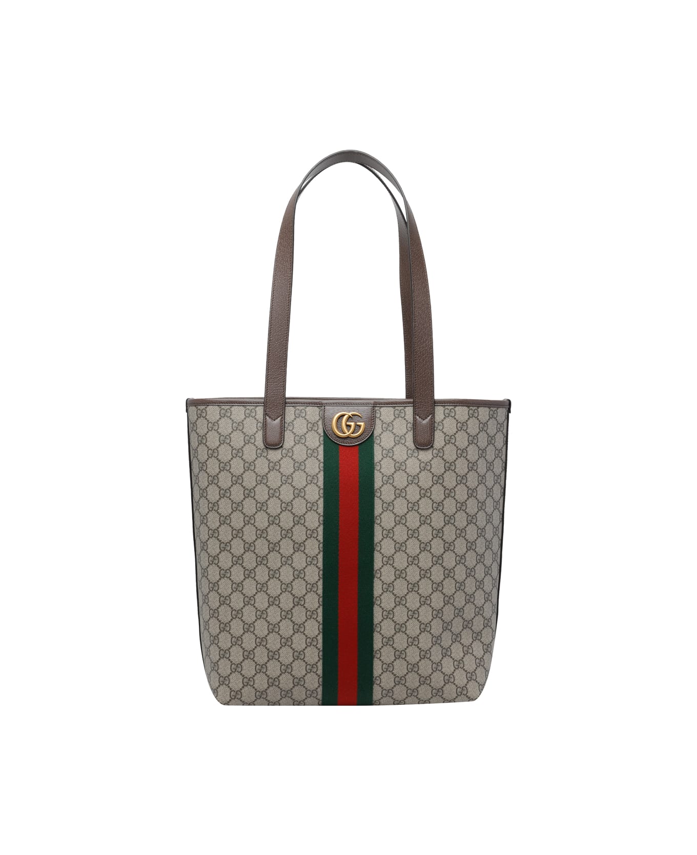 Gucci brown Medium Ophidia shopping bag, inner zip pocket, 2 shoulder straps, GG logo allover Composition: 100% Coated Fabric Gg, Leather Trim