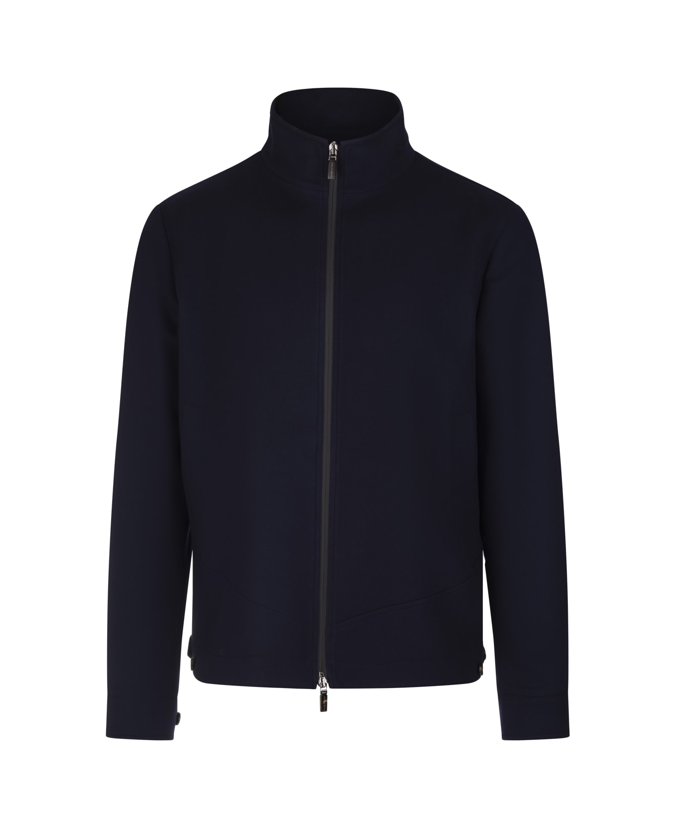 Men's winter jacket by Colombo made of warm and soft navy blue wool and featuring a high collar, long sleeves, side pockets, inner lining and front fastening with a two-way zip.