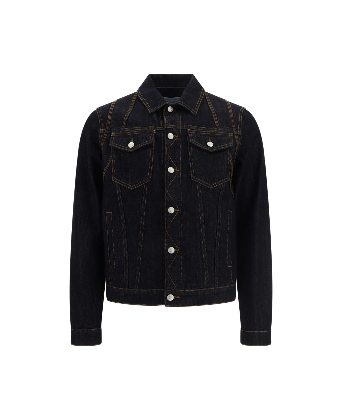 Cotton denim jacket by alexander mcqueen, classic collar, front button closure, two front patch pockets with flap for closure, adjustable button cuffs, all-over contrast stitching, regular fit. Composition: 100% % Cotton
