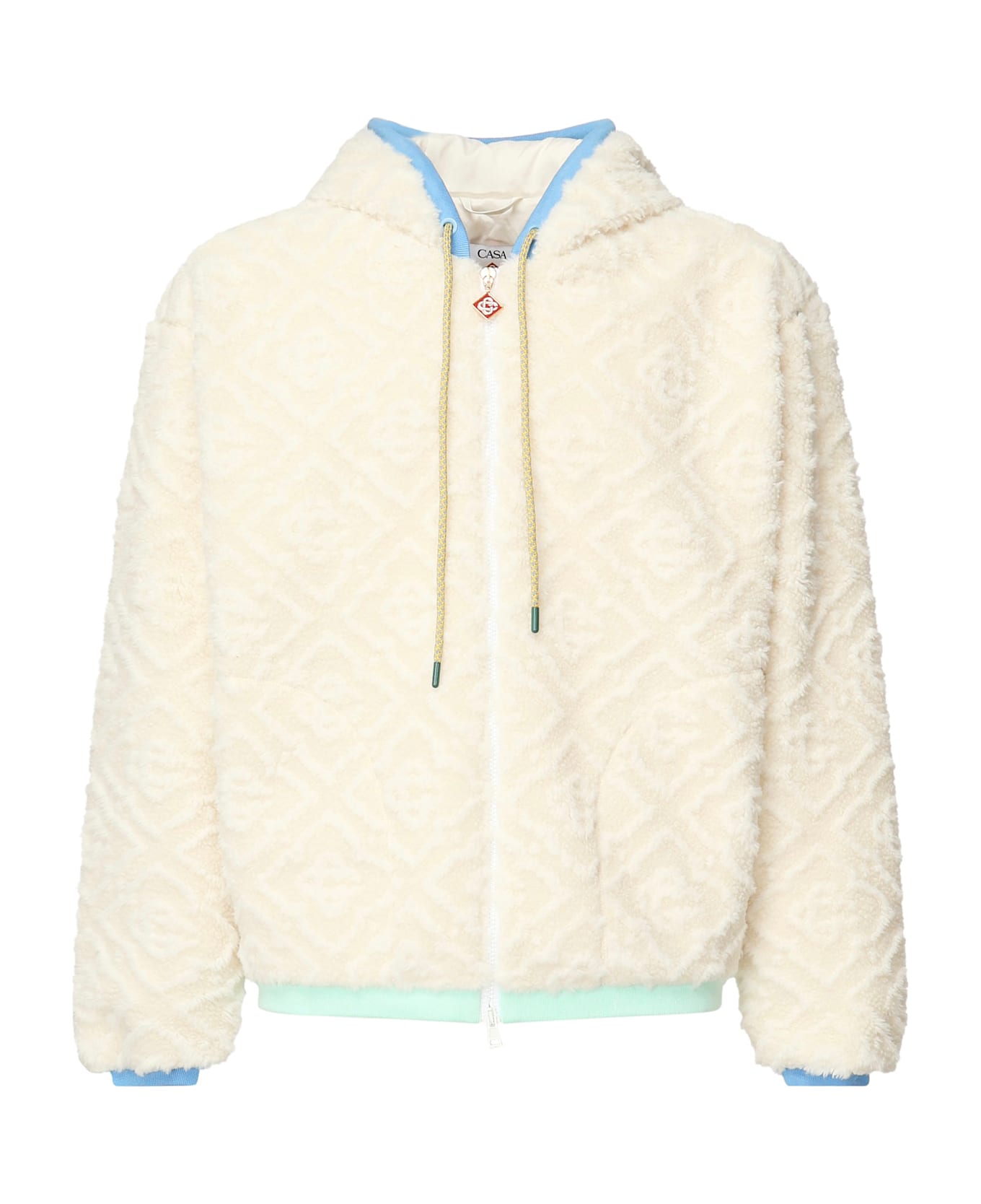 - Front zip closure - Drawstring hood - Contrasting cuffs and hem - Relaxed fit - Size shown in photo is L - Color: Off-White