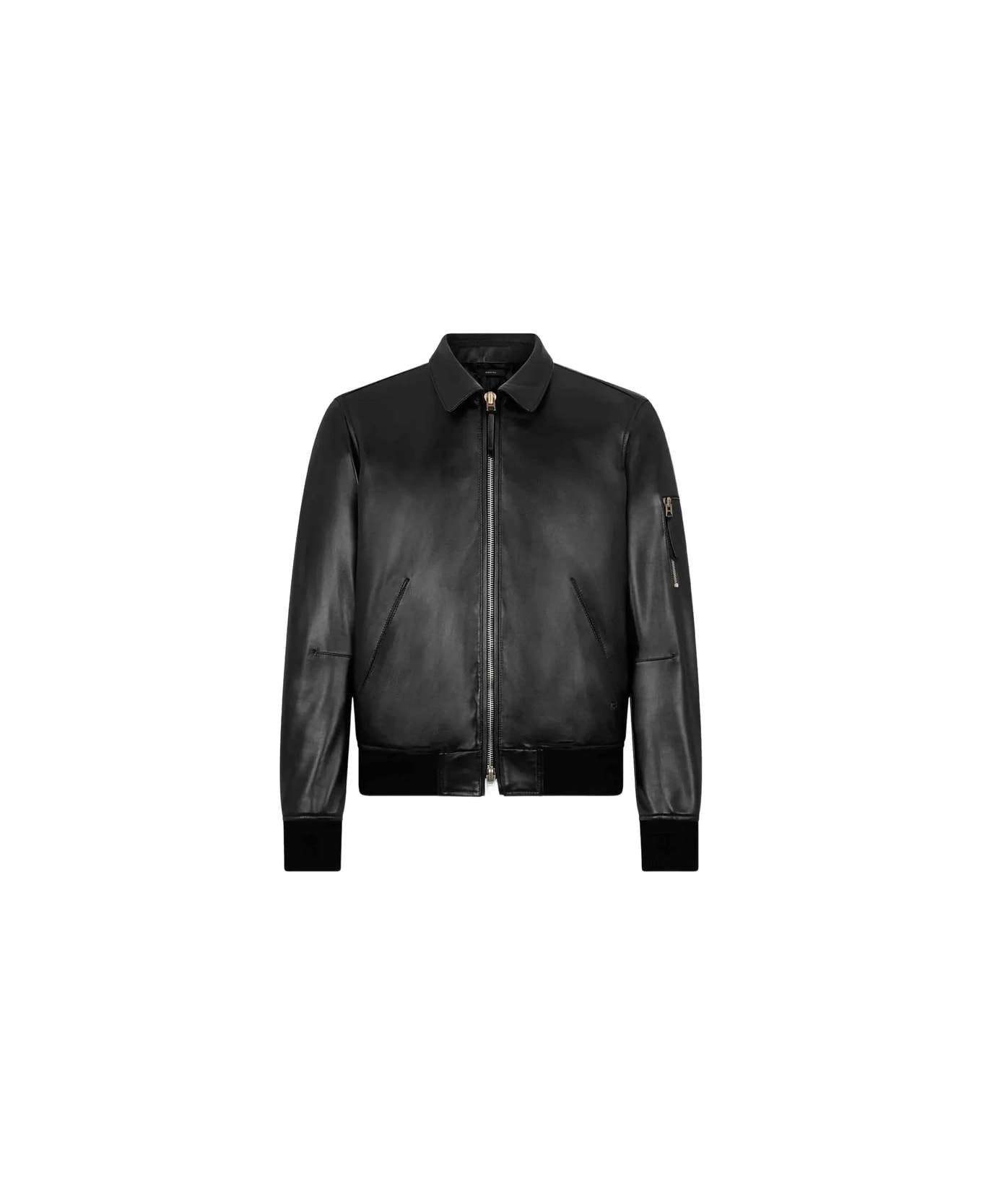 black two-way zip closure ribbed cuffs and hem side pockets front pockets