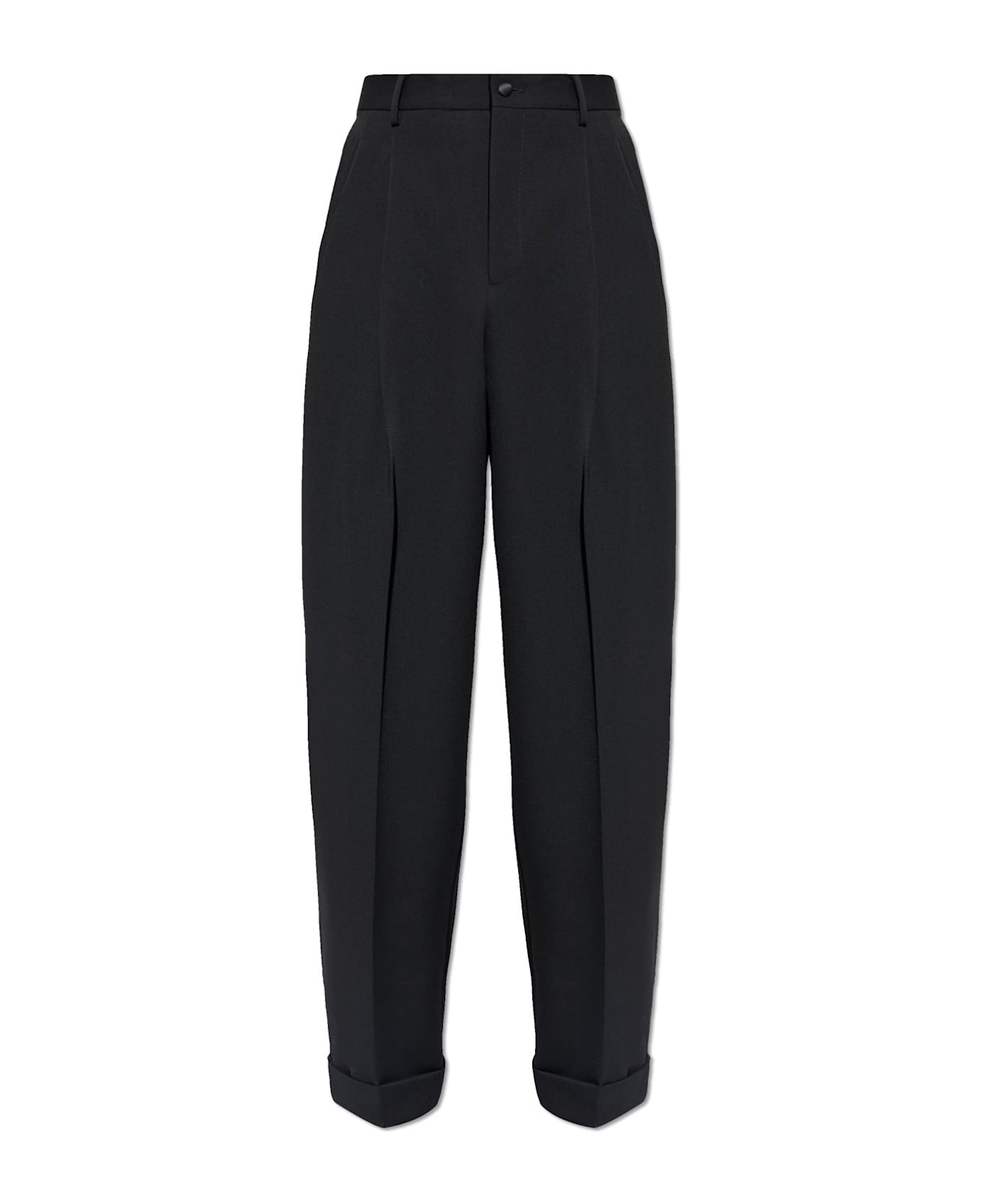 Experience a refined vision of sartorial elegance with these Turn-Up Creased Trousers by Dolce & Gabbana. Impeccably crafted with a high waist and a timeless straight-leg silhouette, these trousers are distinguished by their wide, inverted turn-up cuffs, lending a sophisticated, exclusive finish. The pristine, uninterrupted surface of semi-matte suiting fabric enhanced by delicately lustrous accents near the pockets harmoniously blends formality with subtle opulence. Two side pockets and expertly piped rear pockets accentuate the classic waistband, embodying understated Italian luxury. Each sharply pressed crease reflects the brand's signature devotion to exceptional craftsmanship and modernized tradition, making these trousers a true statement piece for discerning wardrobes. Why choose this product? Exquisite blend of fine materials for luxurious comfort Distinctive turn-up cuffs for a standout aesthetic Timeless tailoring by world-renowned Dolce & Gabbana Elegant, versatile design suited for formal and upscale occasions Finely detailed finishes for lasting sophistication