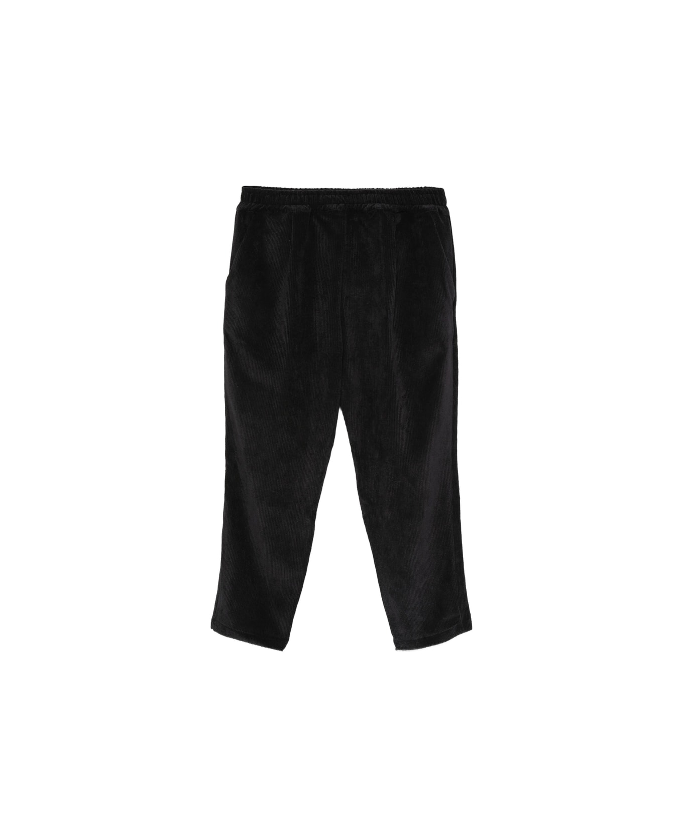 black corduroy texture side pockets elasticated waistband straight leg