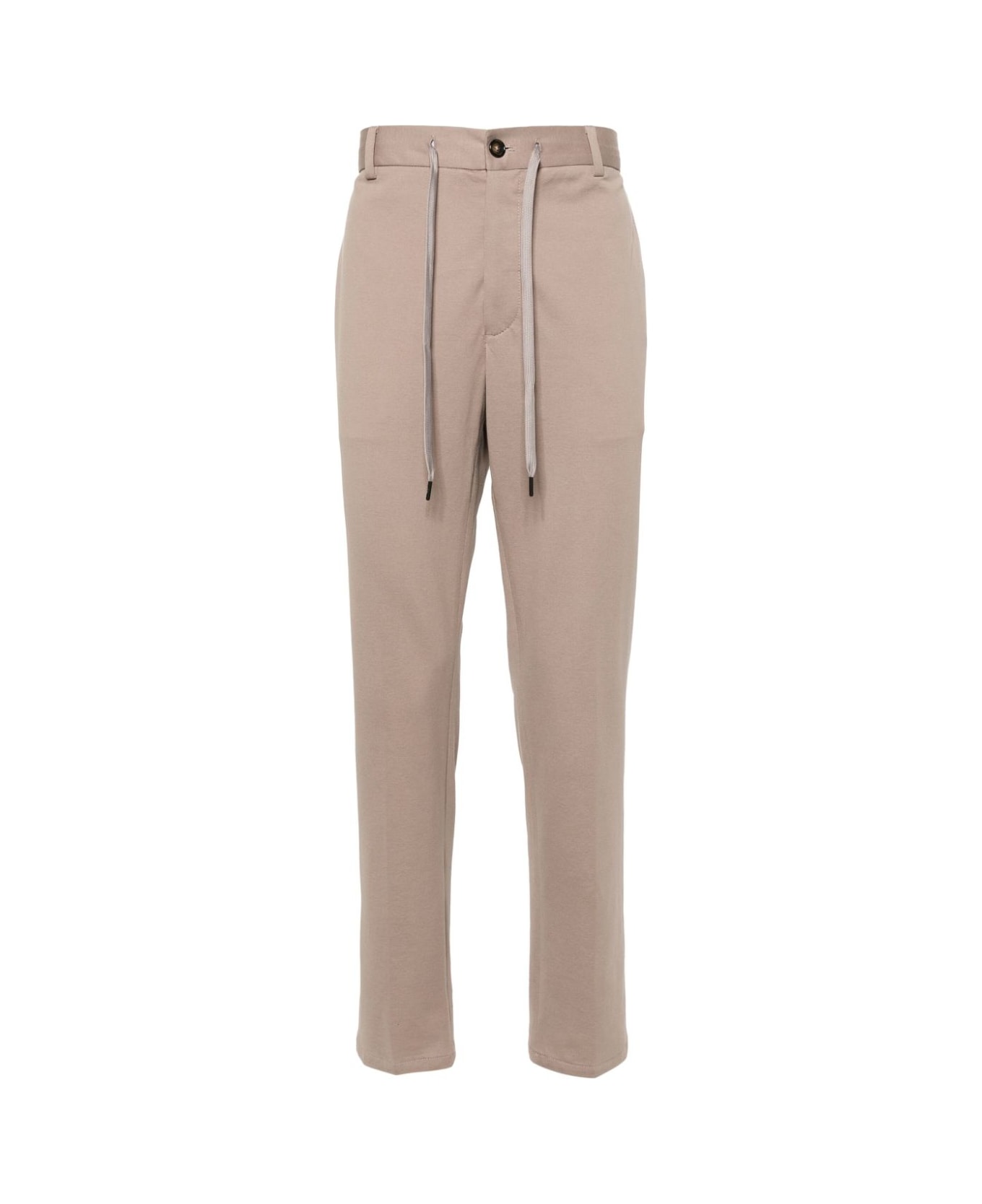taupe cotton blend piqué weave logo-print drawstring slim cut low-rise drawstring waist rear elasticated waistband concealed fly and button fastening belt loops two diagonal pockets to the sides two rear welt pockets pressed crease straight hem