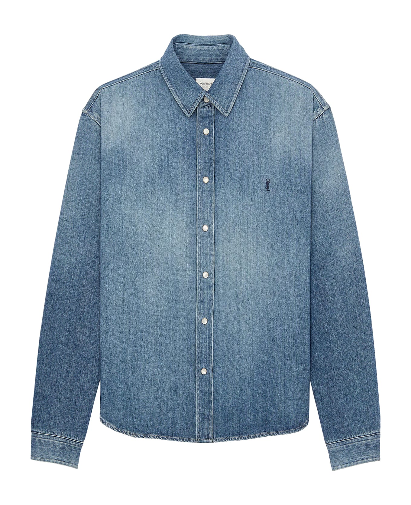 Snap button closure Pointed collar Long sleeves with buttoned cuffs Cassandre embroidery Rounded bottom 100% certified cotton SKU: 862246Y29YA4428