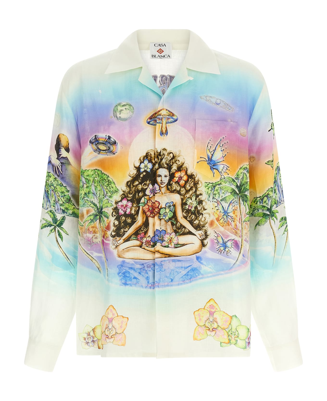'Innocence' print linen shirt, Cuban collar, breast pocket, concealed front button closure, long cuffed sleeves. Composition: 100% linen