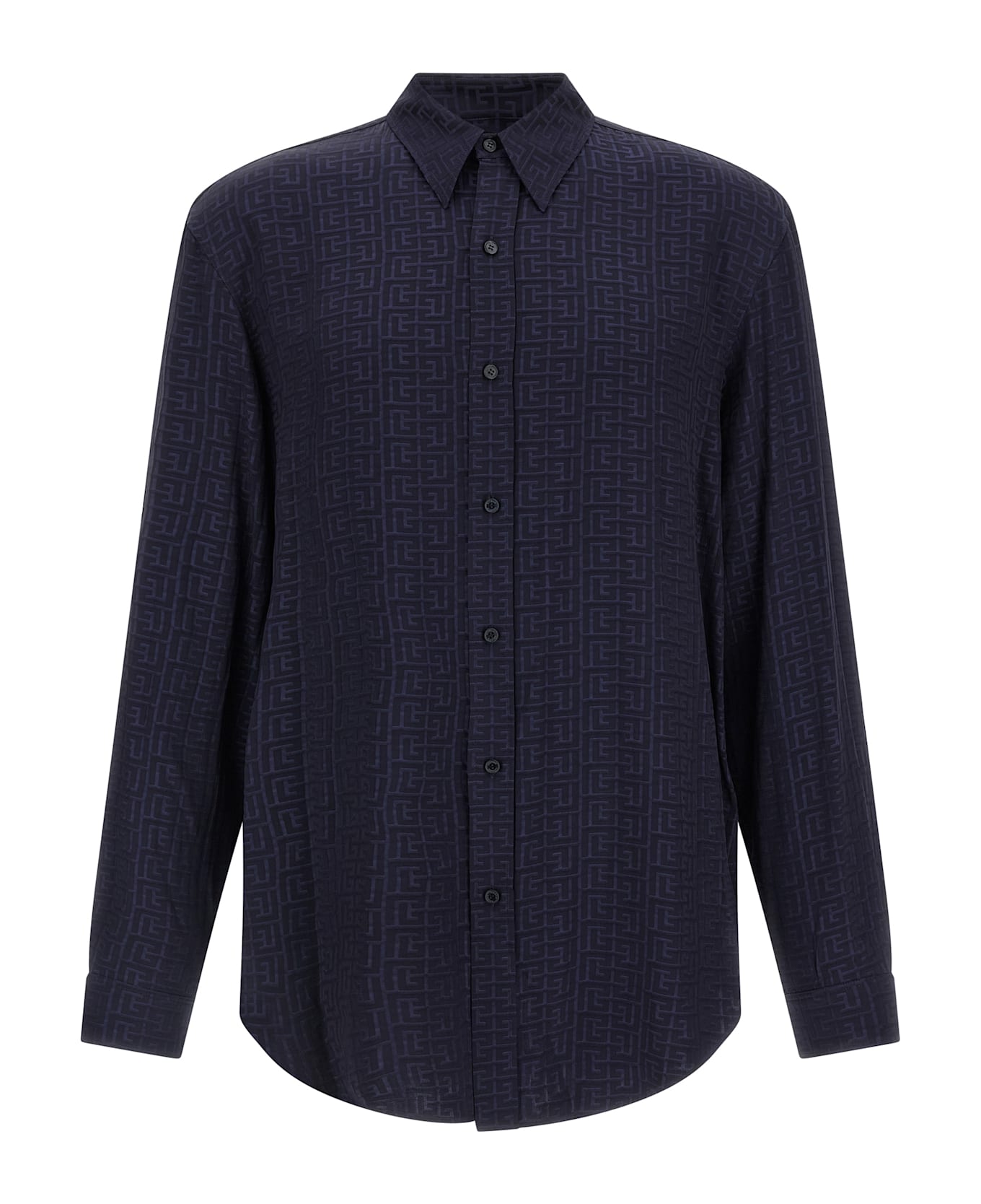 All over jacquard monogram viscose shirt, front button closure, pointed collar, long sleeves with cuffs and dropped shoulders, rounded hem. Composition: 100% viscose