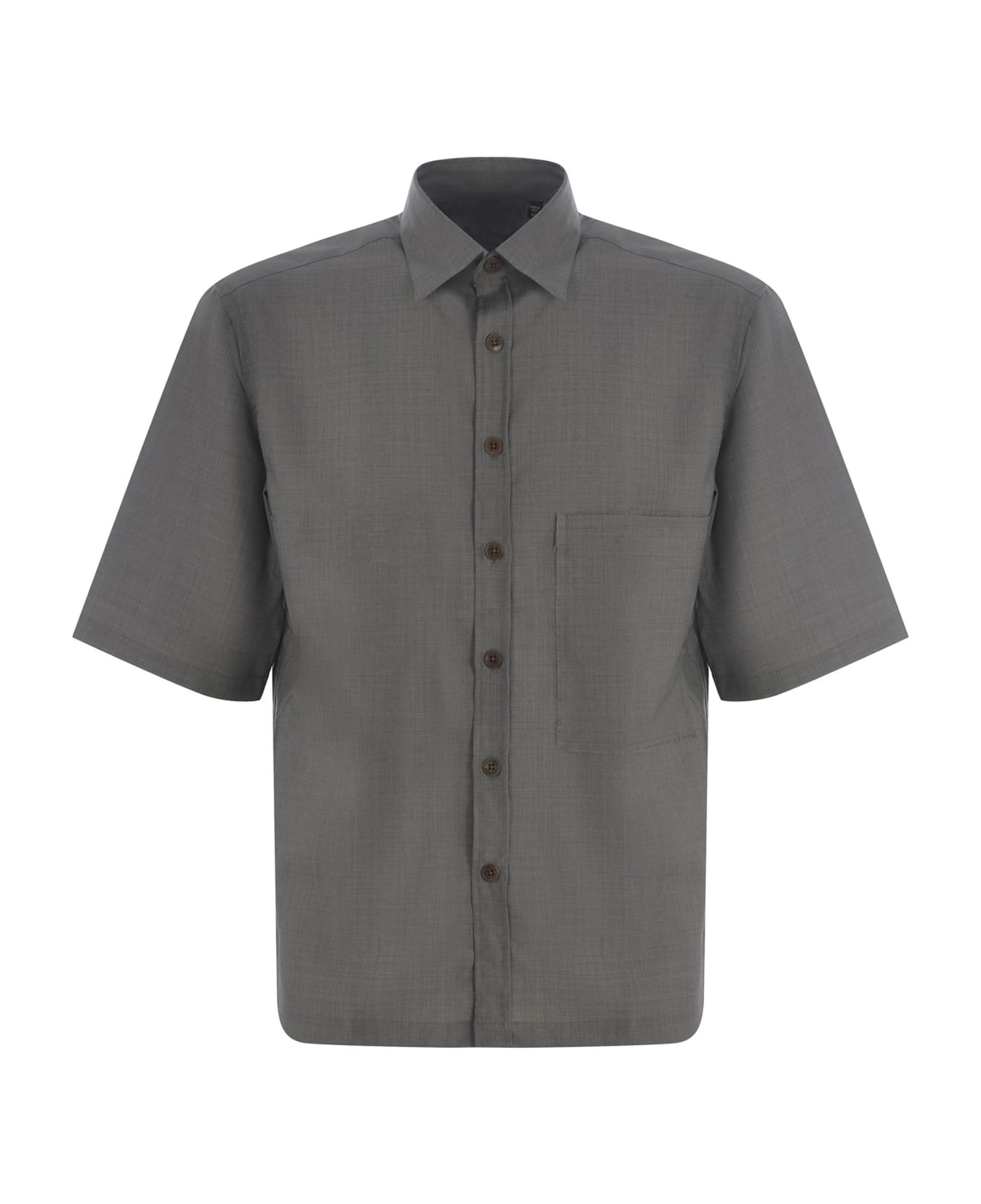 Shirt Costumein "Stefano" made of fresh Lead wool. Classic pointed collar. Short sleeves. Patch pocket on the chest. Button closure on the front. Regular fit. 100% Virgin Wool Made in Italy