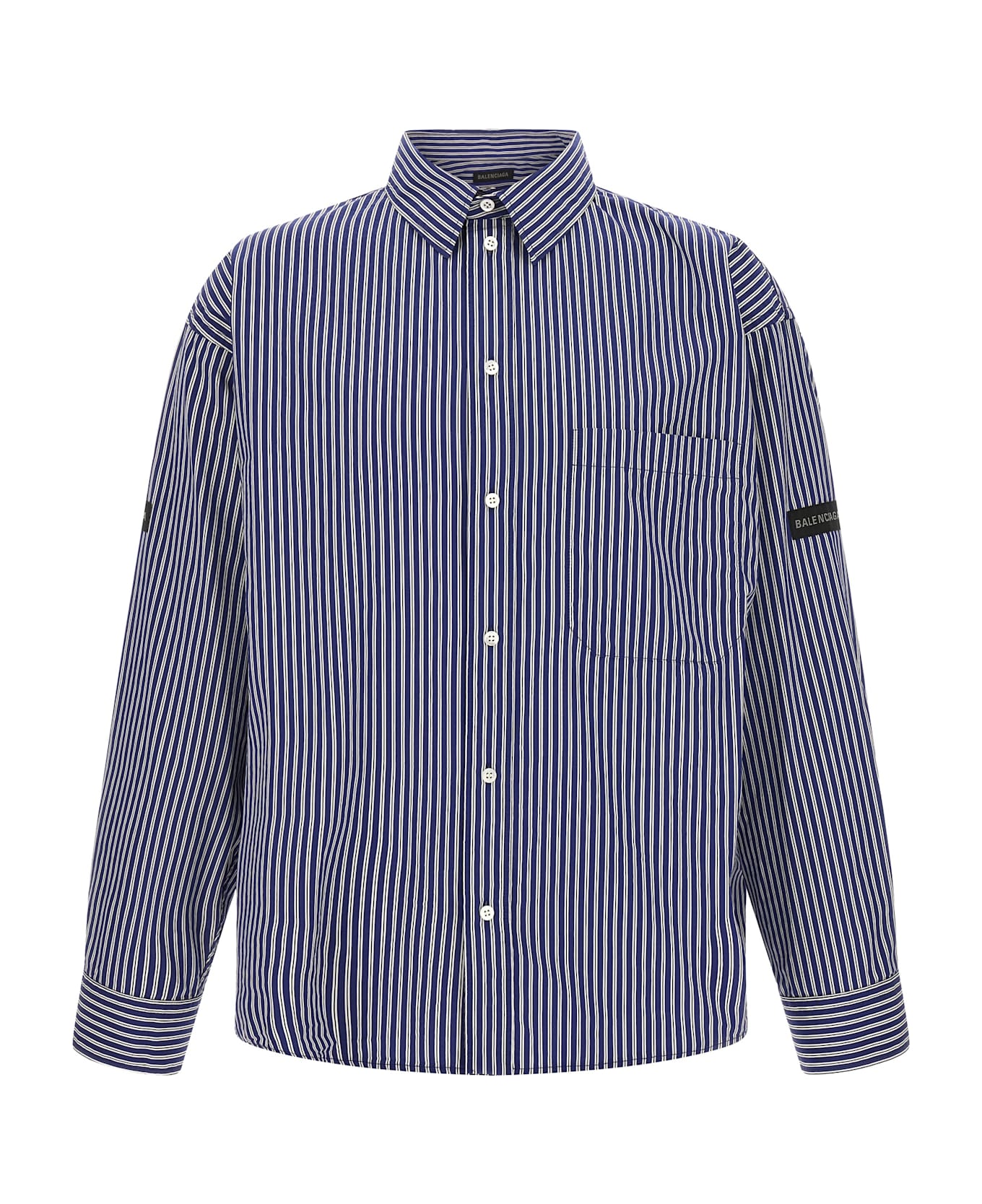 Striped cotton poplin shirt, chest pocket, front button closure, long cuffed sleeves, dropped shoulder and logo patch appliqué. Composition: 87% cotton, 13% polyamide