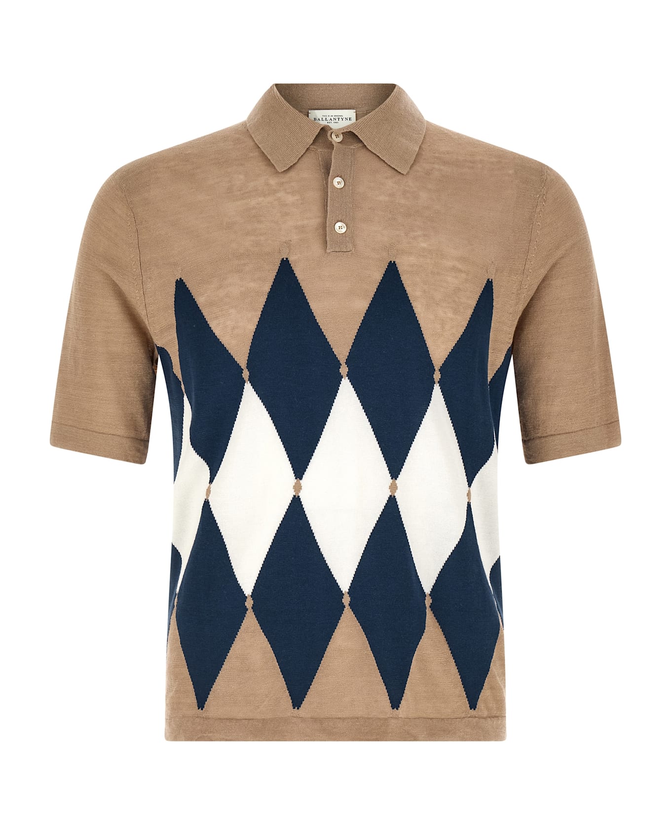 Polo shirt in linen and cotton blend with front Argyle jacquard pattern, collar and buttons, short sleeves. Composition: 50% linen, 50% cotton