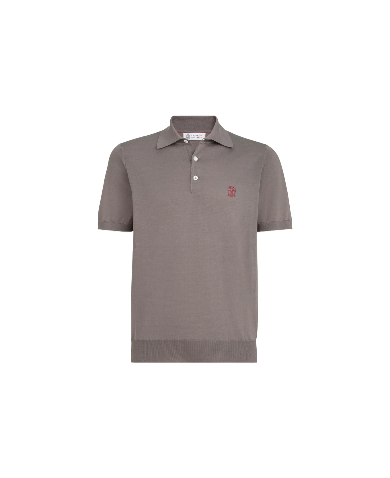 grey cotton logo detail short sleeves polo collar button placket