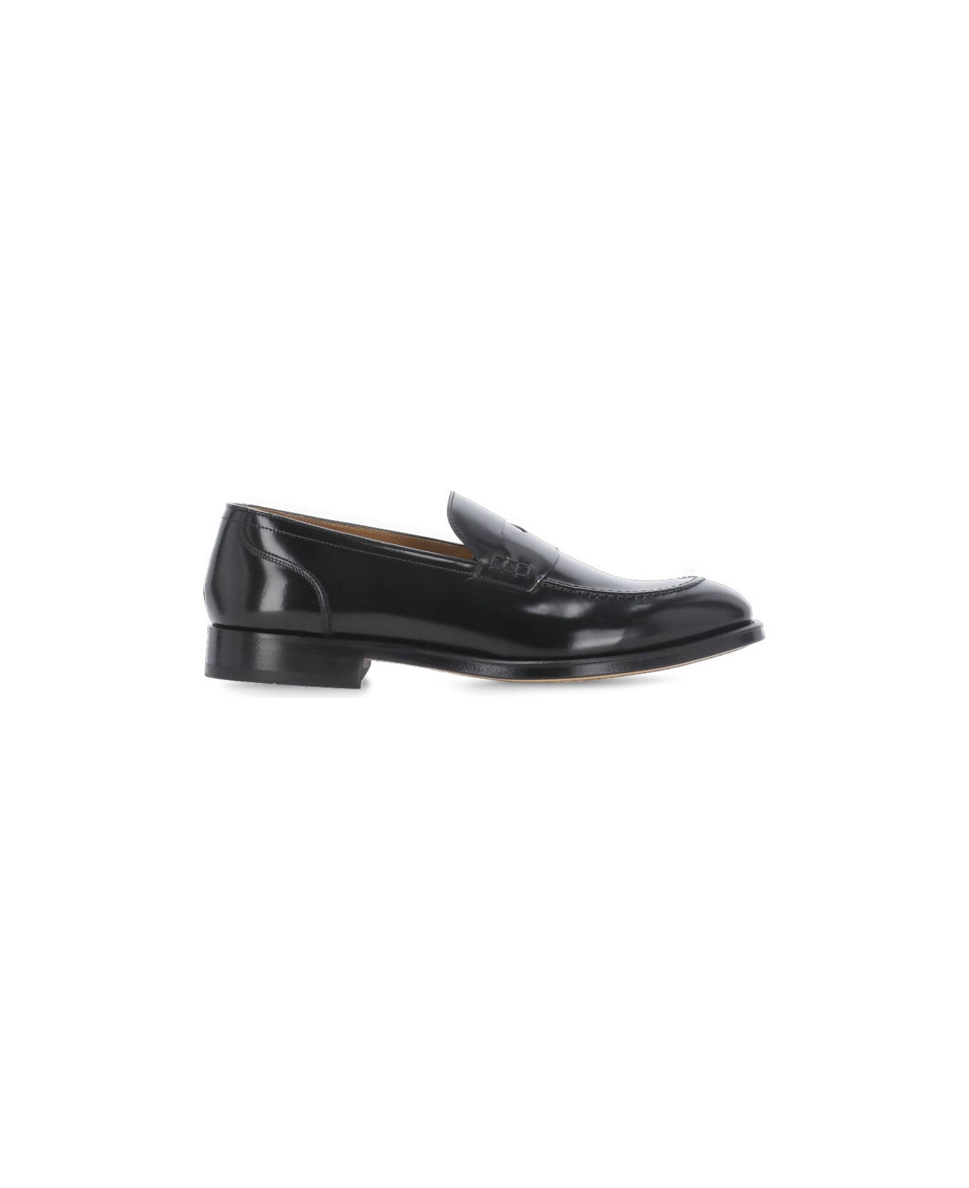 - Black Doucal's smooth leather loafers for man - Round toe - Front leather mask - Heel (2 cm)