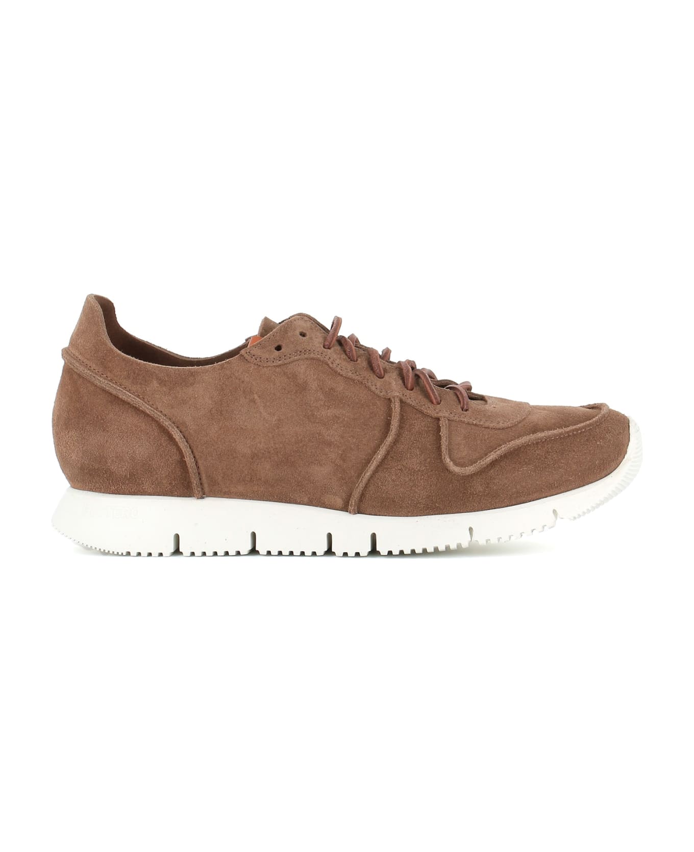 Taupe suede "Carrera" low Sneakers, featuring squared leather laces. Leather label seamed at tongue with embossed Buttero logo detailing. Lined interior. The 1. 5 cm-high raised insole allows for optimal comfort. Vibram V-lite high sole in white rubber with flex grooves. Heel: 3 cm
