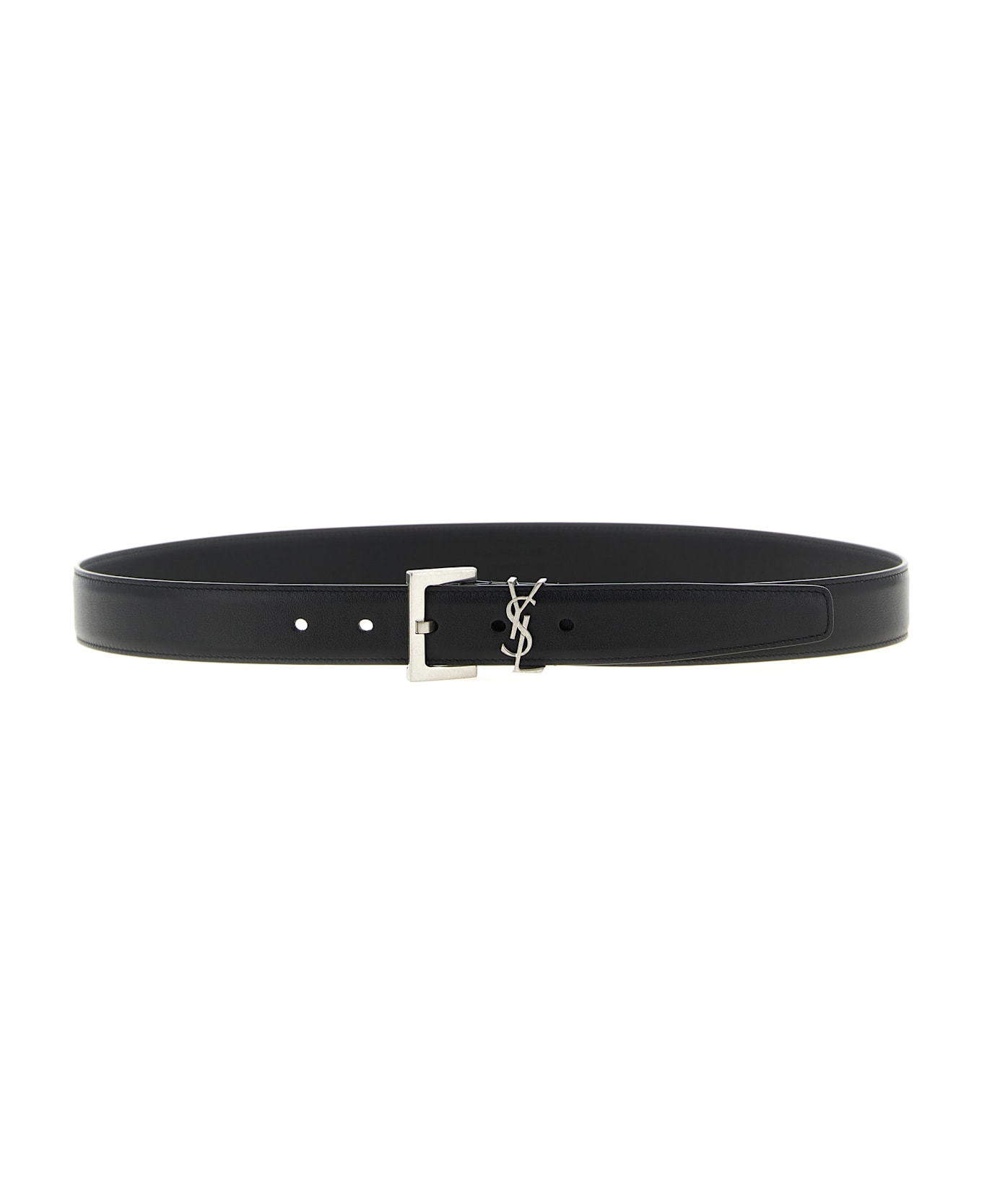 Smooth leather belt featuring a 'Monogram' silver color metal buckle. Composition: 100% calfskin leather (Bos Taurus)