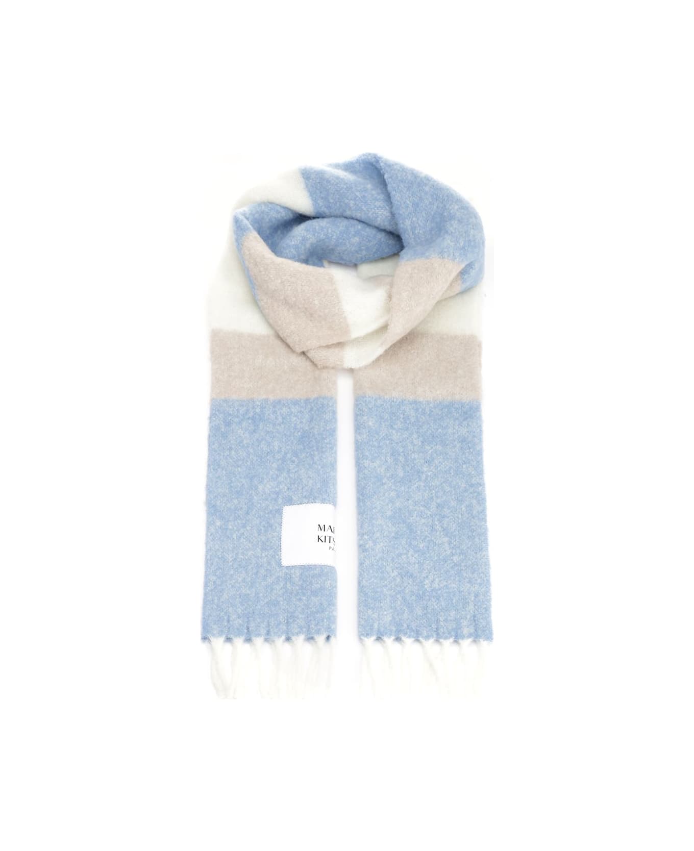 Striped alpaca wool scarf with fringes