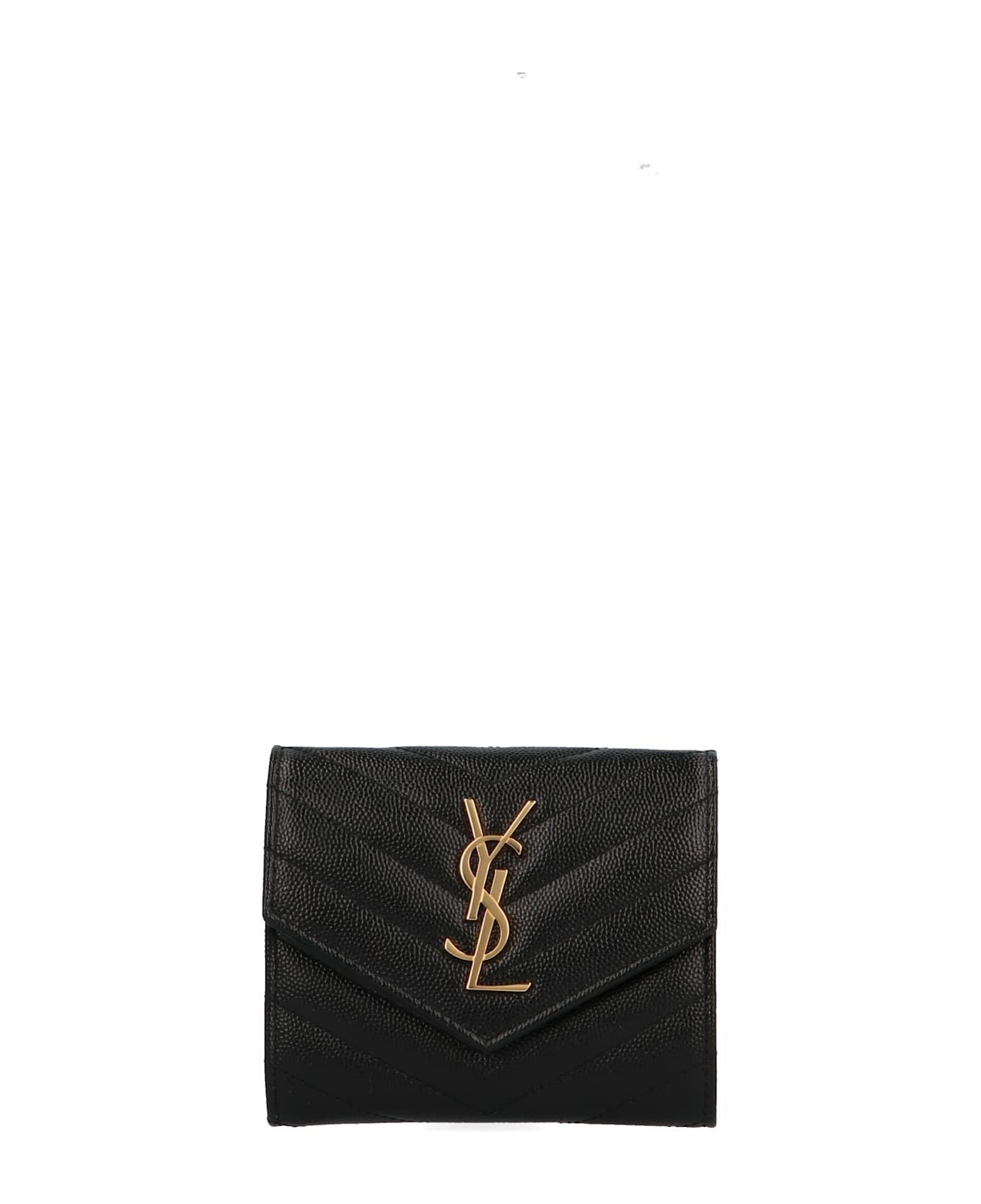 Saint Laurent wallet in matelassé grain de poudre leather featuring a gold metal logo on the front. Composition: 100% calf leather (bos taurus)