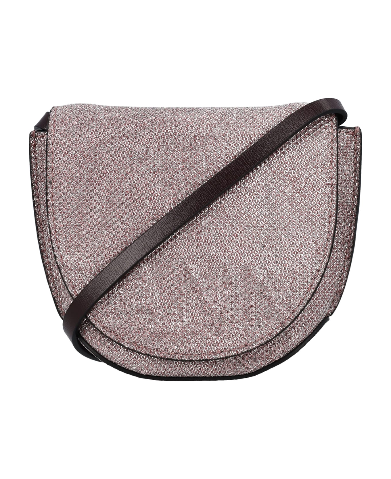 Banner Nano Saddle Bag By Ganni. Featuring: Flap With Subtle Embossed Ganni Logo And Magnet Closure Two Compartments Detachable And Adjustable Shoulder Strap Glitter Look Height: 11,5cm Width: 14cm Depth: 5cm