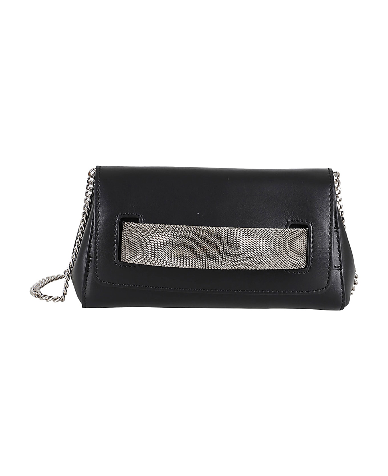 Gossip Mini bag - Orciani - black color - smooth leather - flap closure - palladium-colored front handle - chain shoulder strap - back logo - Dimensions: Width: 20 cm, Height: 10 cm, Depth: 7 cm