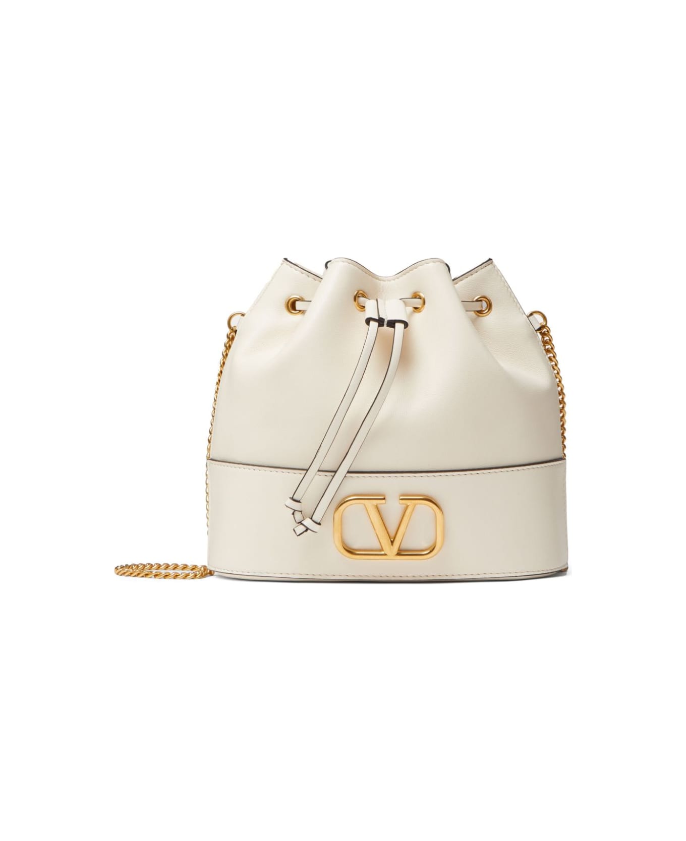 ivory white nappa leather VLogo Signature antique-effect hardware top drawstring fastening chain-link shoulder strap main compartment Composition: Lambskin, 100%