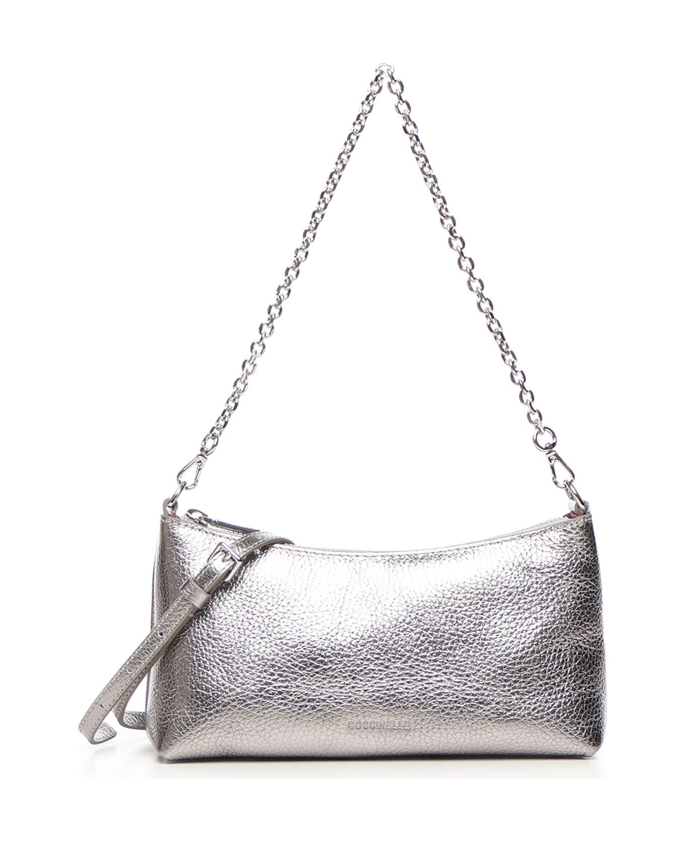 - Made of grained leather - Zip closure - Removable chain shoulder strap - Removable and adjustable leather shoulder strap - Fabric interior - Dimensions: 22 x 12 x 7 cm - Color: Steel