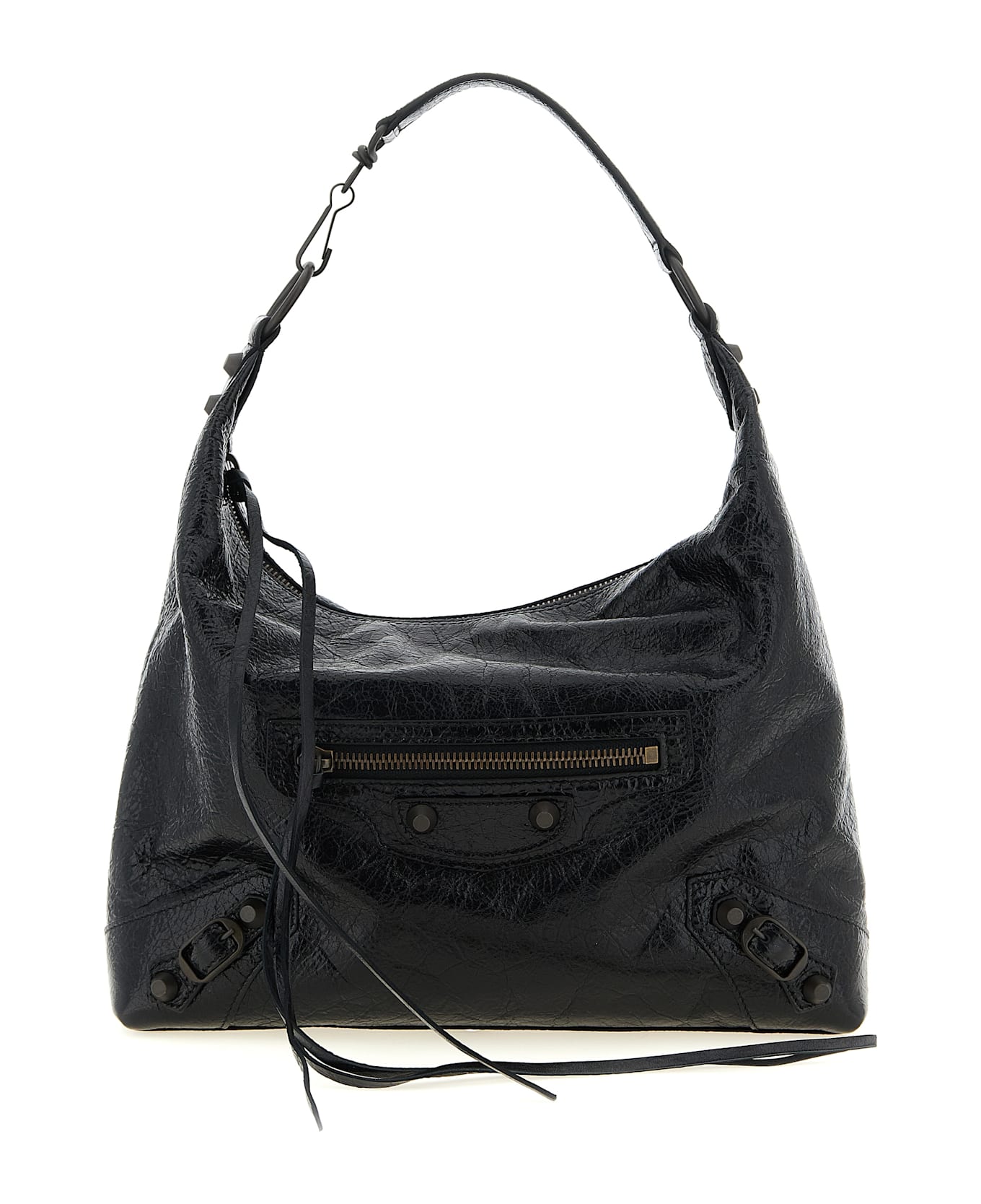 Arena 'Hobo Le City S' lambskin shoulder bag with brass finish metal studs, snap hook handle, front zip pocket, top zip closure, cotton canvas lining, adjustable and removable shoulder strap. Composition: 100% lamb leather (Ovis aries)