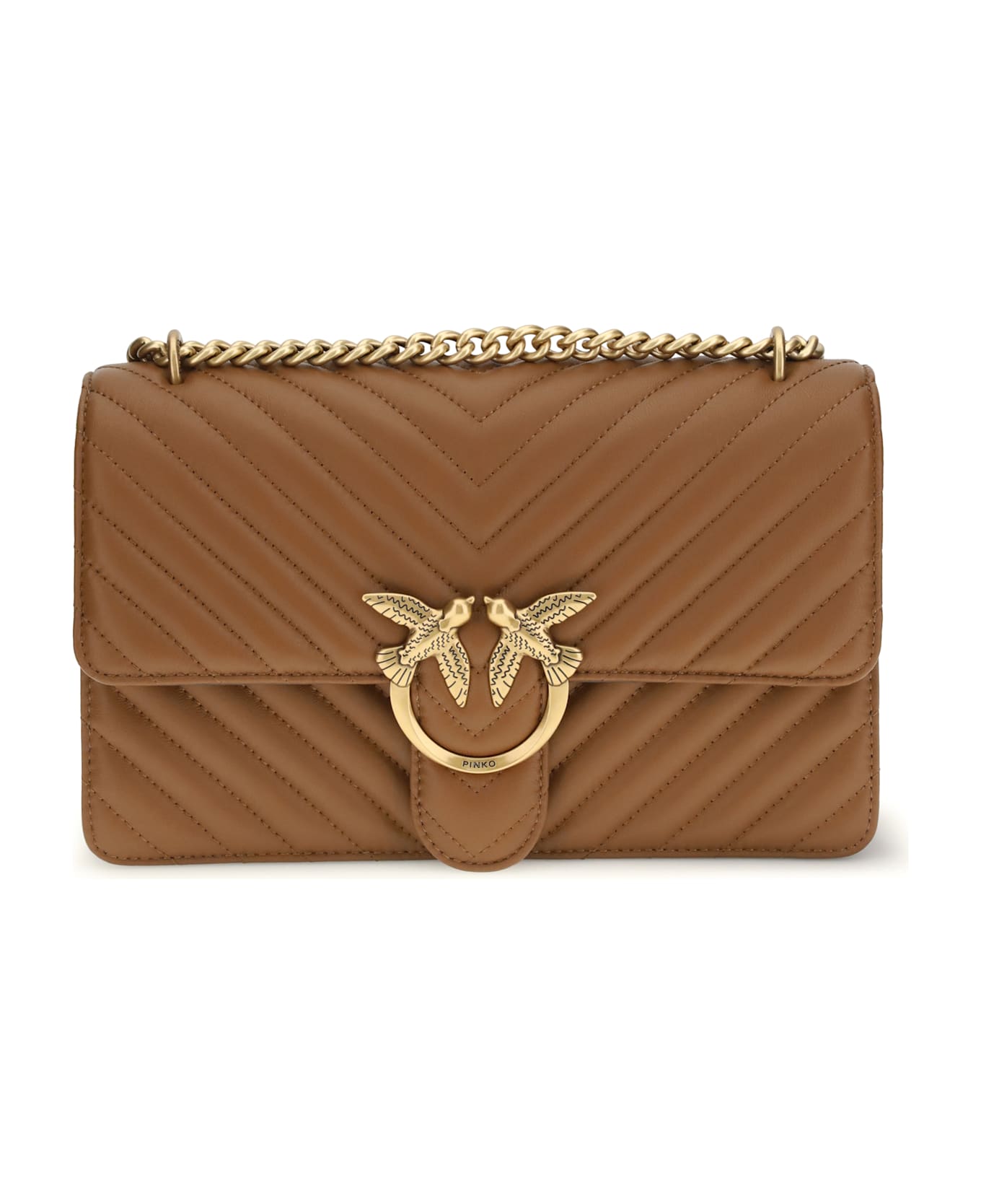 The love one classic leather shoulder bag by pinko is a true symbol of elegance and versatility. the front magnetic button closure ensures ease of use and security, while the iconic gold-plated love birds logo, embossed on the front, is a distinctive mark of luxury. the quilted and padded design gives a sophisticated texture, making the bag not only beautiful, but also pleasant to the touch. with the double internal compartment, this bag offers functionality, allowing you to organize objects in a practical and orderly way. the sliding chain shoulder strap allows you to wear it comfortably, while the flat leather shoulder strap, adjustable and removable, offers the possibility of personalising the look according to your preferences. the tone-on-tone embroidered brand monogram on the back adds an additional exclusive detail.