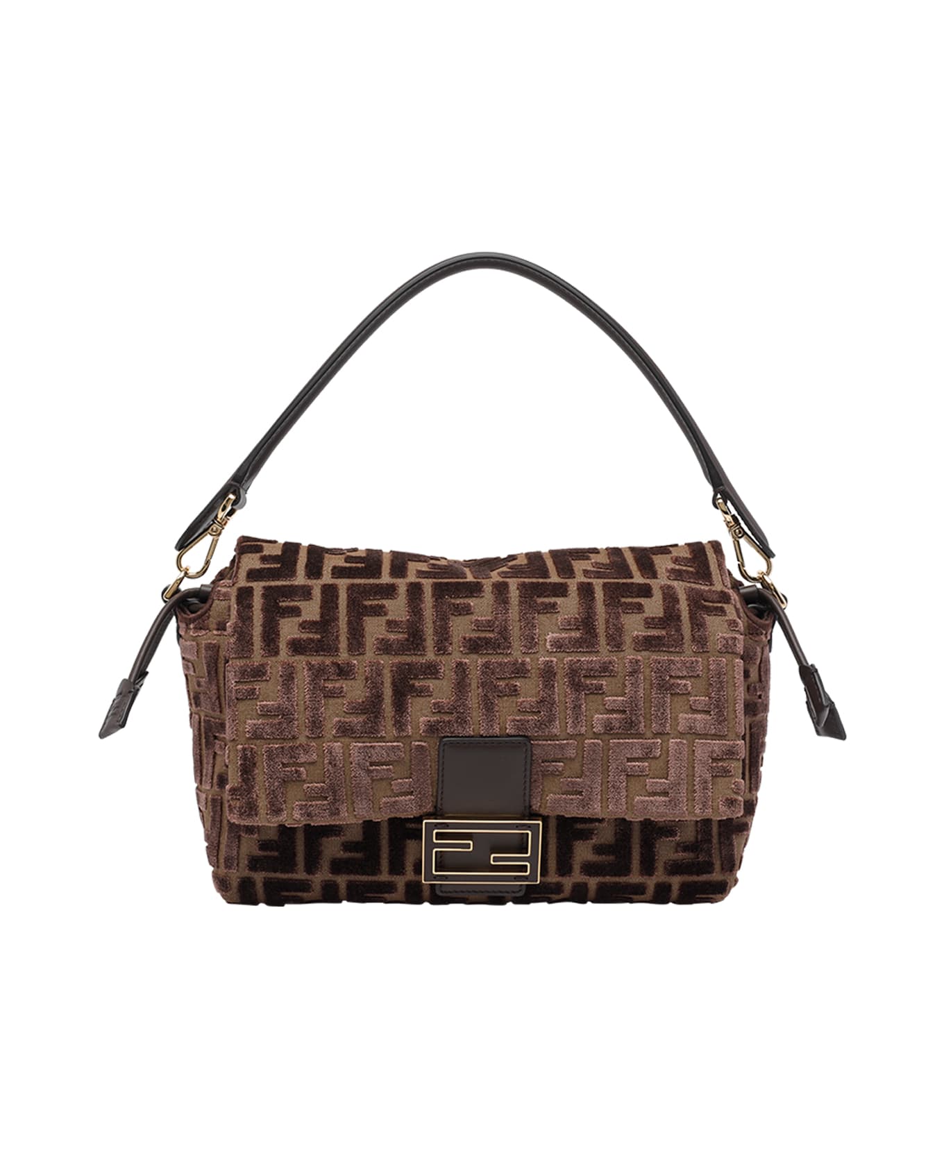 Fendi brown Mamma Baguette shoulder bag, magnetic and coulisse closure, handle and adjustable shoulder strap, all over FF logo, FF plaque closure Composition: 100% Fabric