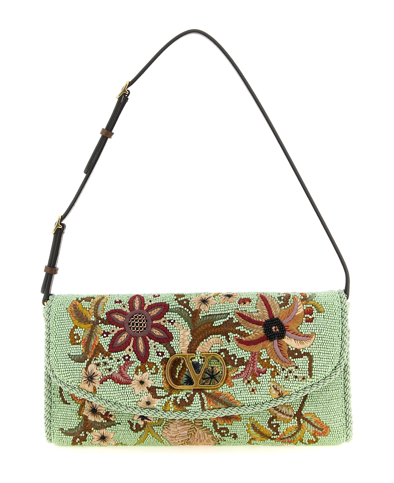 Small 'DeVain' shoulder bag in fabric covered with beads with all-over floral embroidery, trimming piping, satin lining, magnetic flap closure with VLogo Signature metallic cut-out effect on the front, adjustable leather handle. Composition: 100% silk