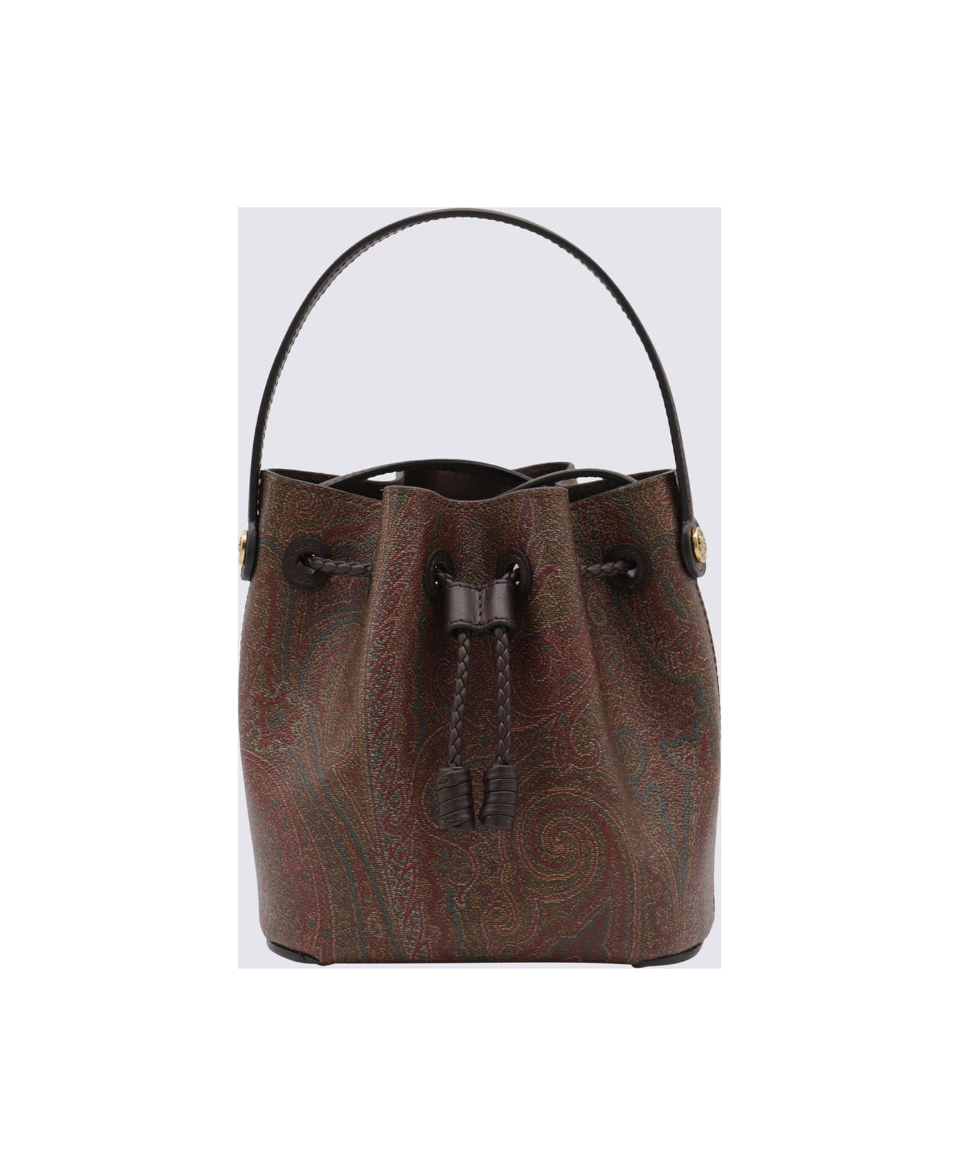 Brown cotton satchel from Etro featuring top handle, adjustable shoulder strap, braided drawstring closure, main compartment and gold tone hardware. Composition: _, 76% Cotton, 24% Polyester