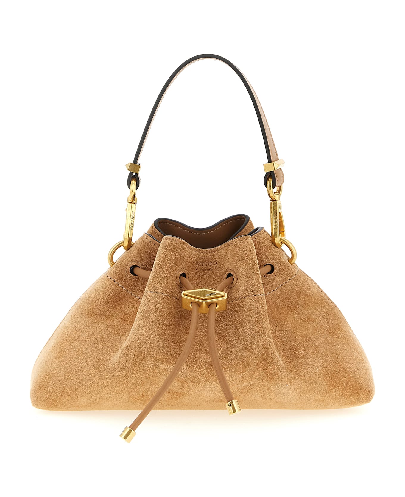 Small 'Chinch' suede handbag with tone-on-tone smooth leather details, faceted metal 'Diamond' drawstring closure, removable handle, adjustable and removable shoulder strap. Composition: 90% calfskin leather 10% brass
