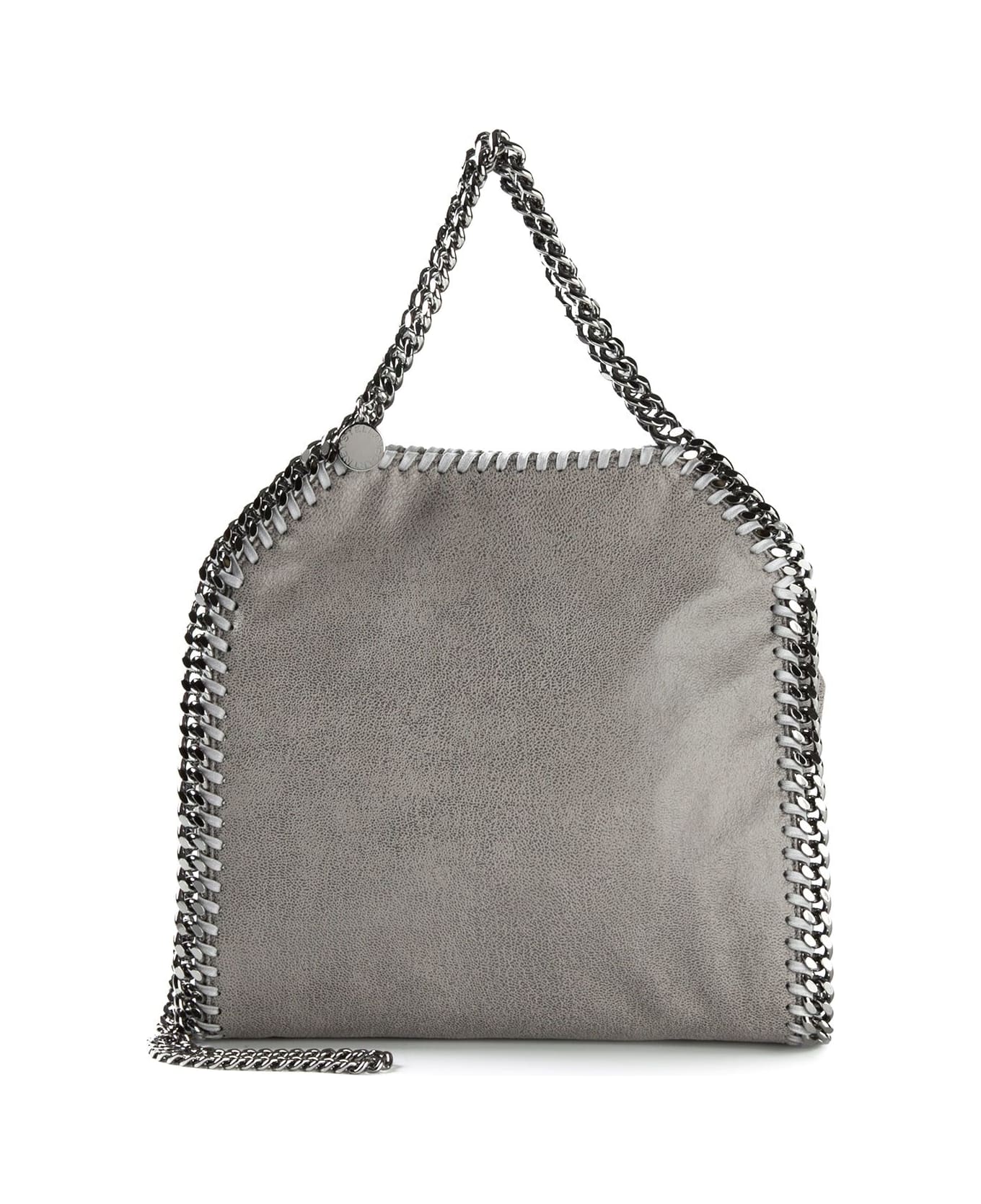 You wouldn't leave your house for the day without your mobile phone or keys, so why opt-out of carrying this fabulous bag? Step out with this glamorous grey mini Falabella tote from Stella McCartney that is the perfect companion as you busy about town. Trust us, this one's in the bag. Featuring top handles, a silver-tone chain trim, a silver-tone chain shoulder strap, a top snap closure, an internal patch pocket, an embossed internal logo stamp, a logo printed lining and a silver-tone logo plaque.