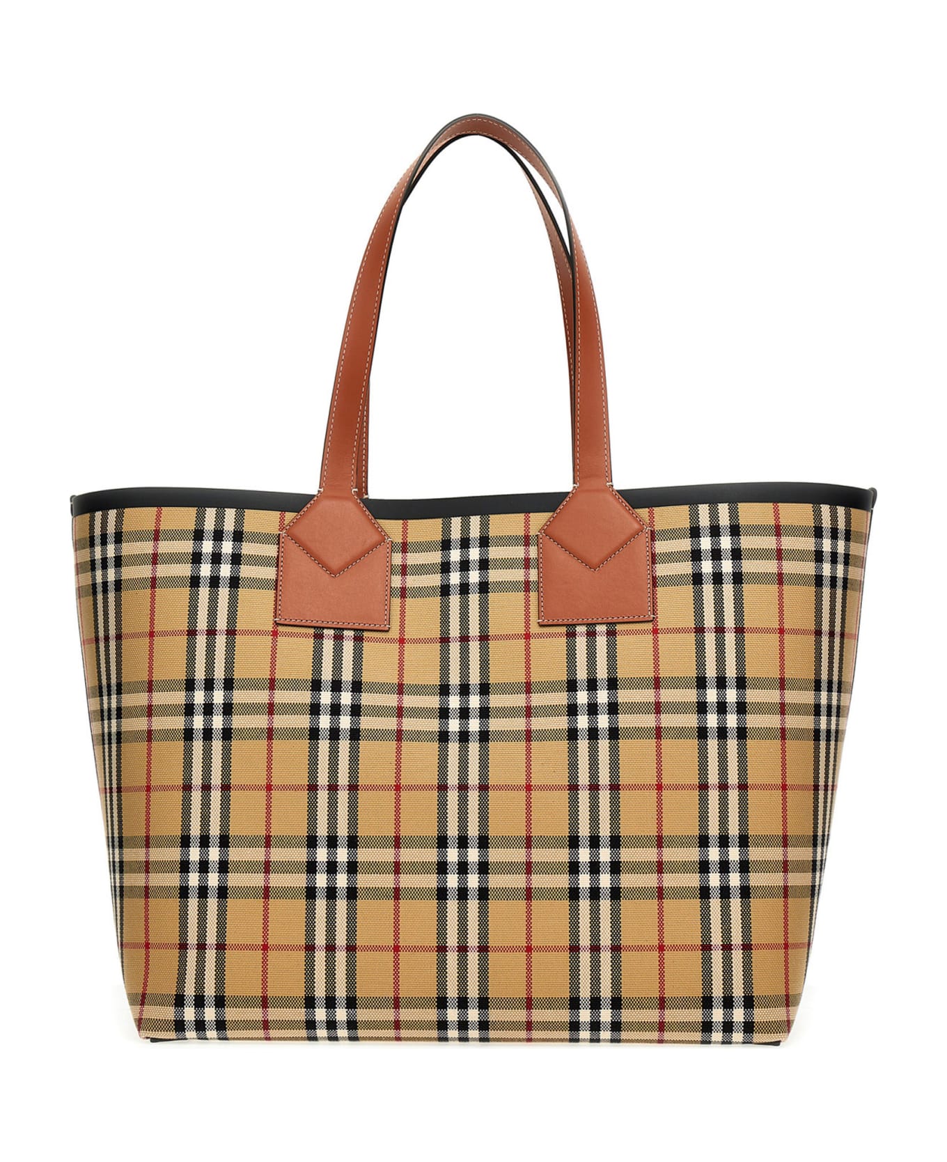 London' cotton canvas shopping bag with Burberry Check jacquard check pattern, leather handles with stitching and a removable clutch bag with zip closure. Composition: 100% cotton