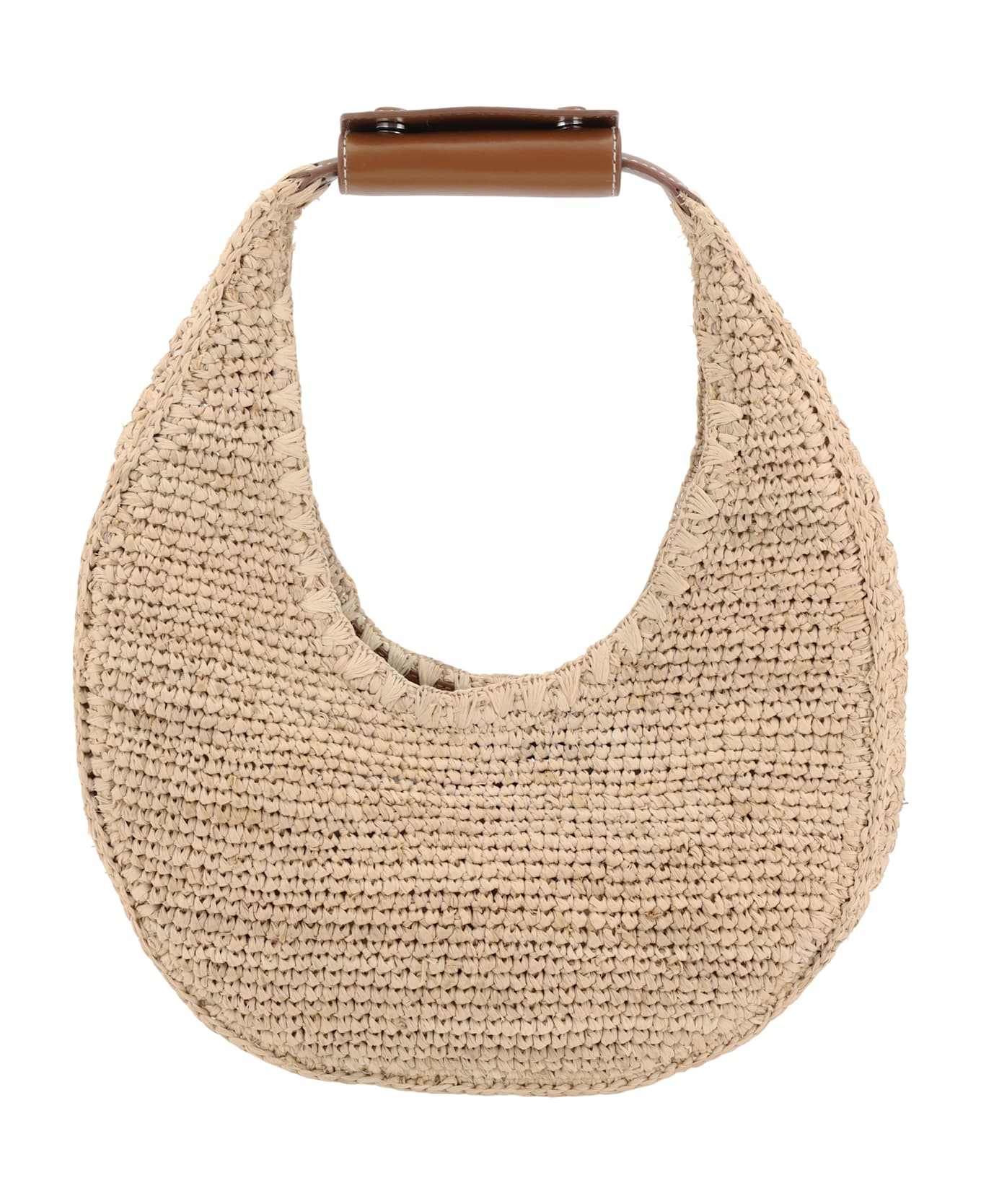 Staud's raffia hobo bag combines natural materials and luxurious details. the logoed leather patch applied to the front adds a distinctive brand touch, while the leather base lends stability and an elegant contrast to the raffia structure. the interior, with a single compartment, offers a practical and spacious solution for everyday items. a versatile accessory, perfect for completing casual-chic looks with a refined style accent.