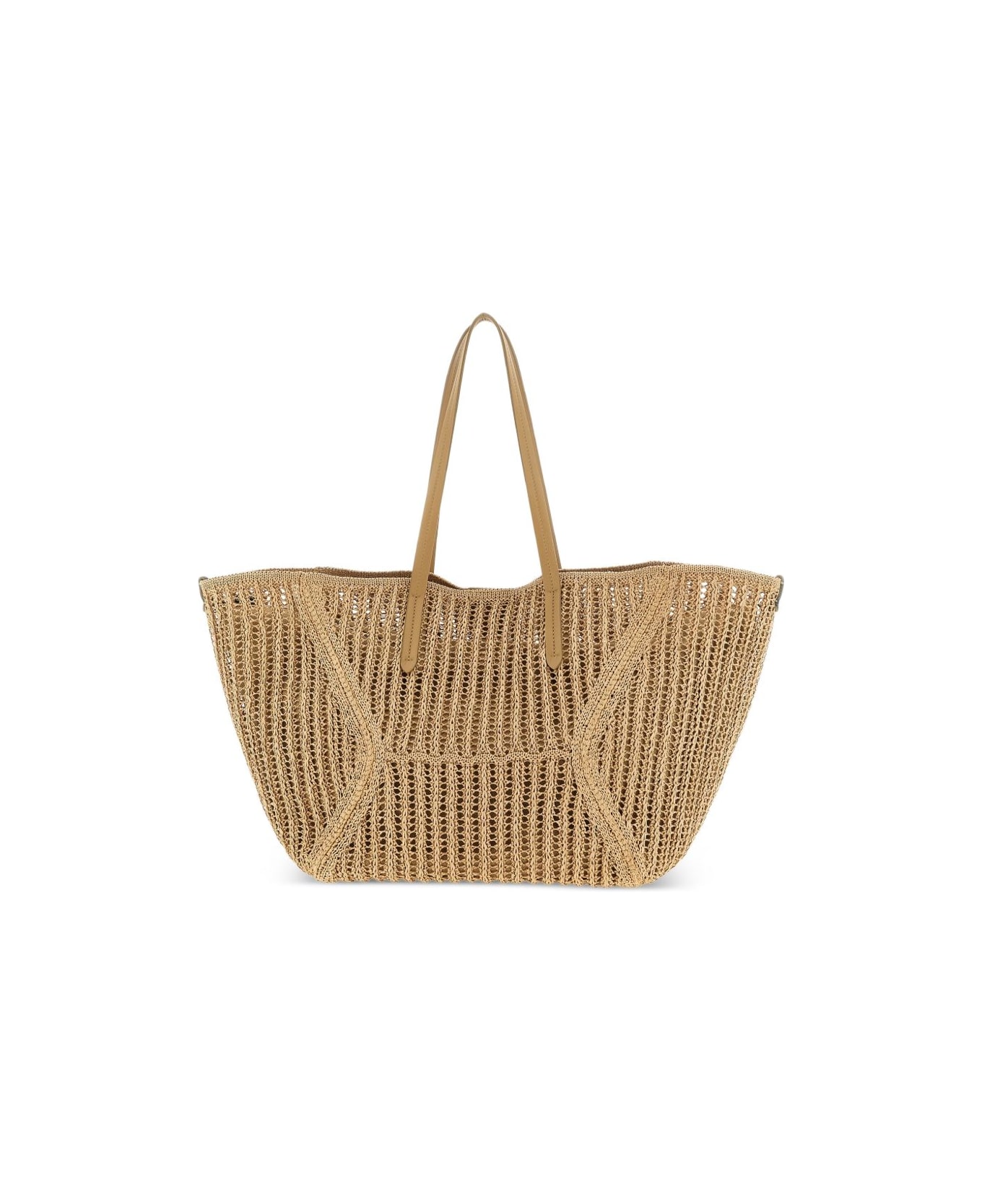 beige woven raffia double fixed handle magnetic closure side embellishment inner clutch bag zip closure Composition: 100% Polyamide