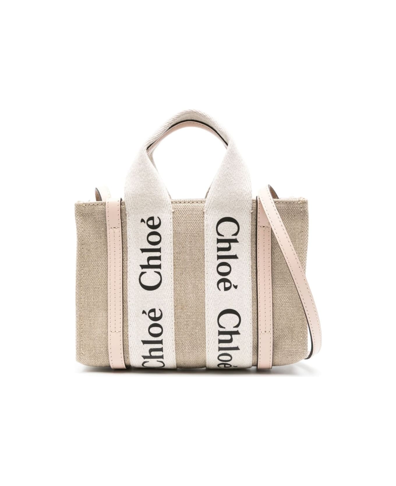 beige/light pink linen calf leather logo print to the side detachable shoulder strap open top two top handles internal slip pocket Composition: 100% Linen