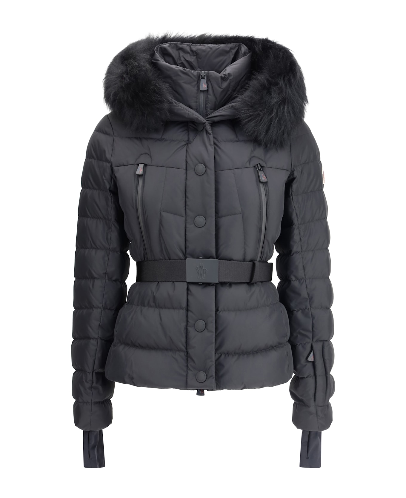 The beverley down jacket by moncler grenoble is designed for skiing and outdoor activities. crafted from 2l technical nylon, it ensures breathability and protection, while its down-filled padding provides lightweight warmth. featuring a windproof gaiter and ykk® aquaguard® water-resistant zips, it effectively shields against the elements. the adjustable hood, finished with a detachable long-hair shearling trim, elevates the piece with a refined touch. complete with a removable belt and multiple functional pockets, this jacket perfectly balances high-performance design with sophisticated alpine style.
