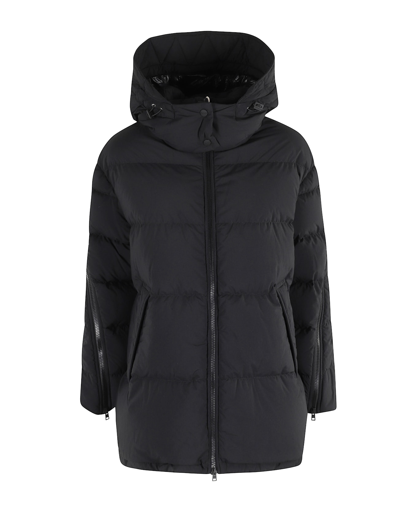 Down jacket - Herno - Black color - Matt effect quilted fabric - Removable hood - Flush side pockets with button - Front zipper closure - Loose fit.