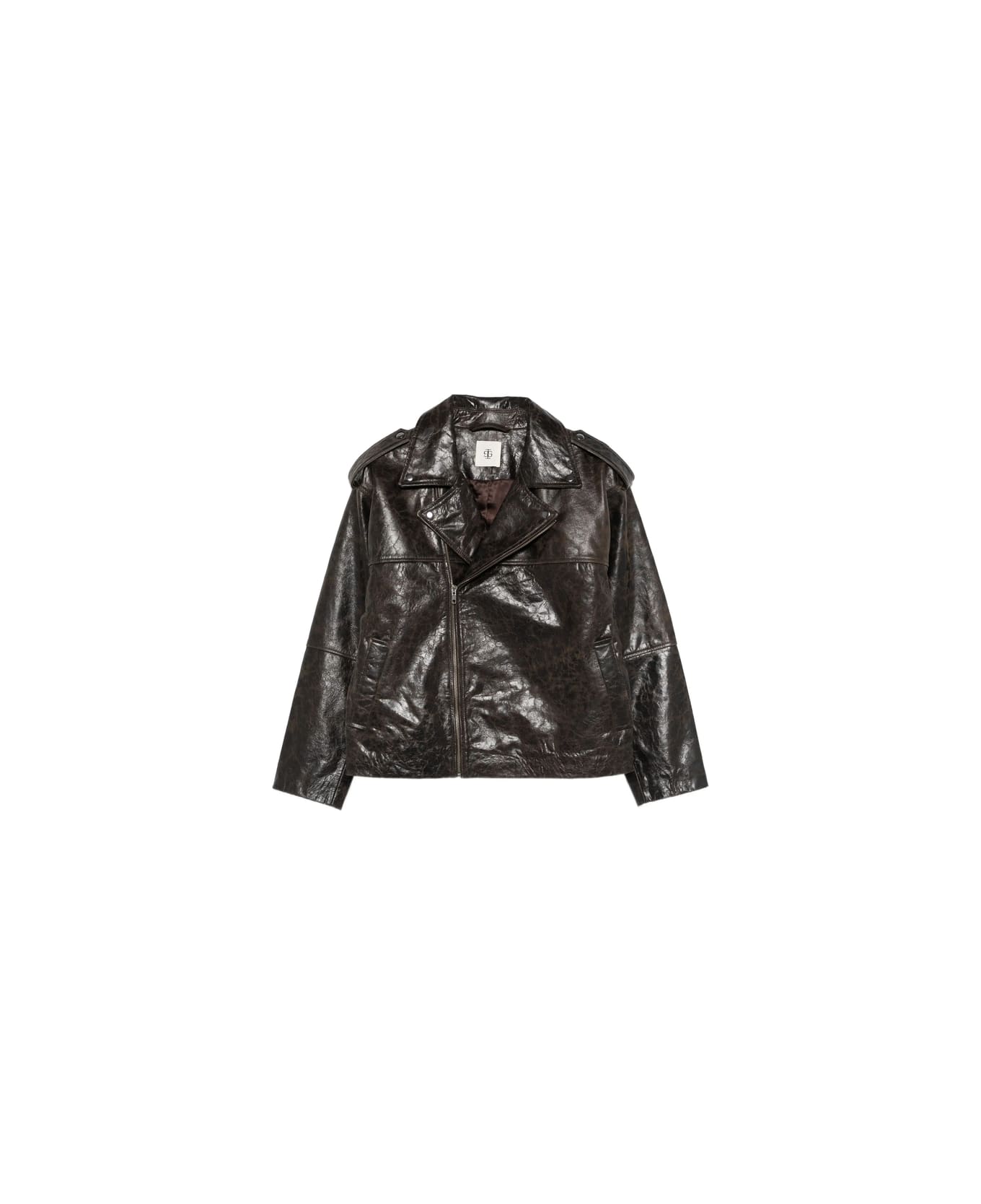 dark brown textured finish zip fastening front zip pockets epaulettes notched lapels