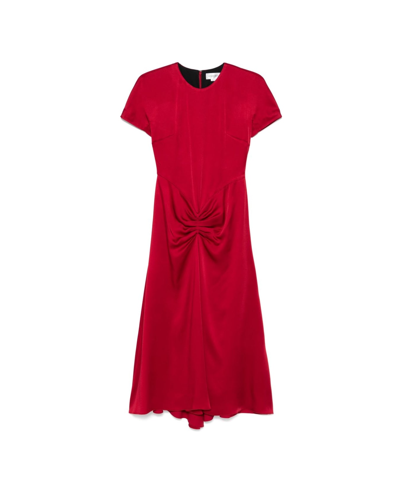 red concealed rear zip fastening crew neck short sleeves curved hem