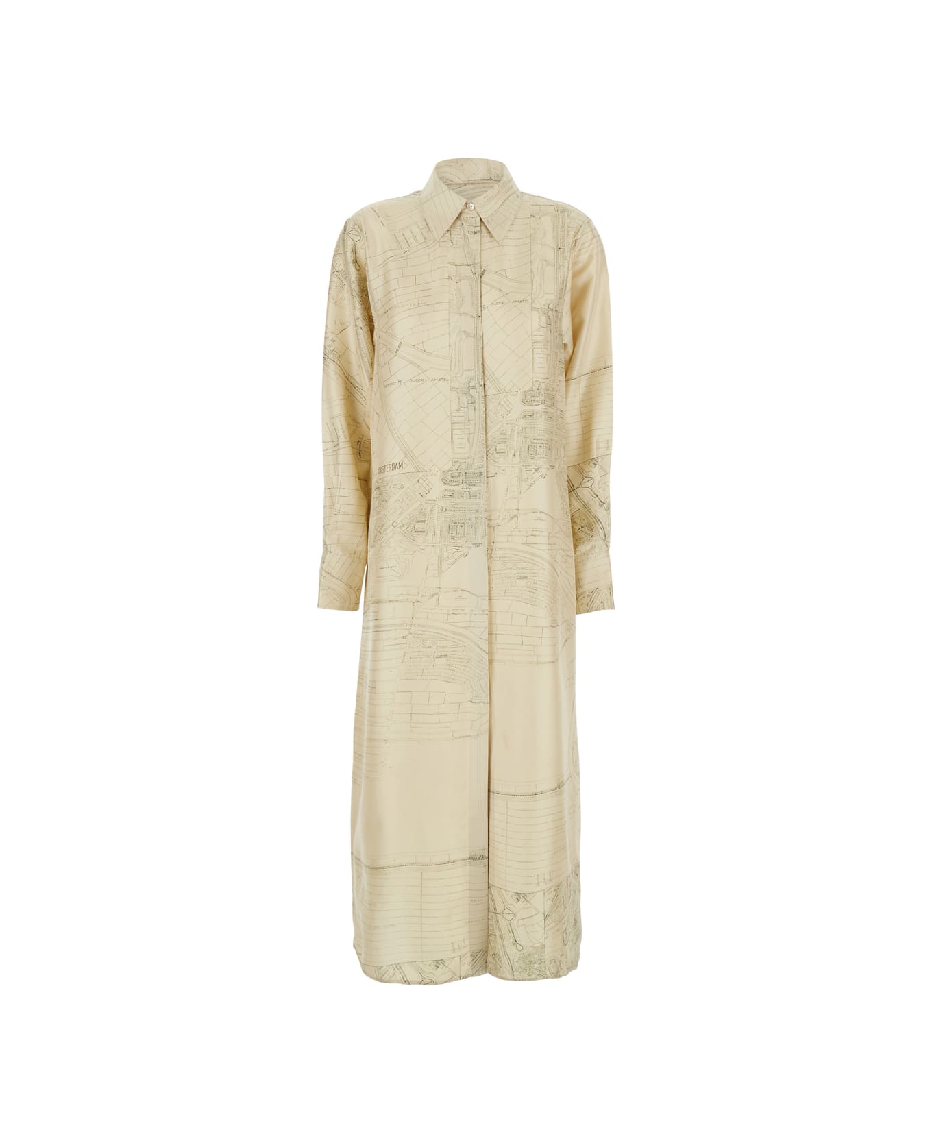 Dress White Classic collar Long sleeves Rear cut-out Rear button closure Straight hem All-over print Silk Relaxed fit