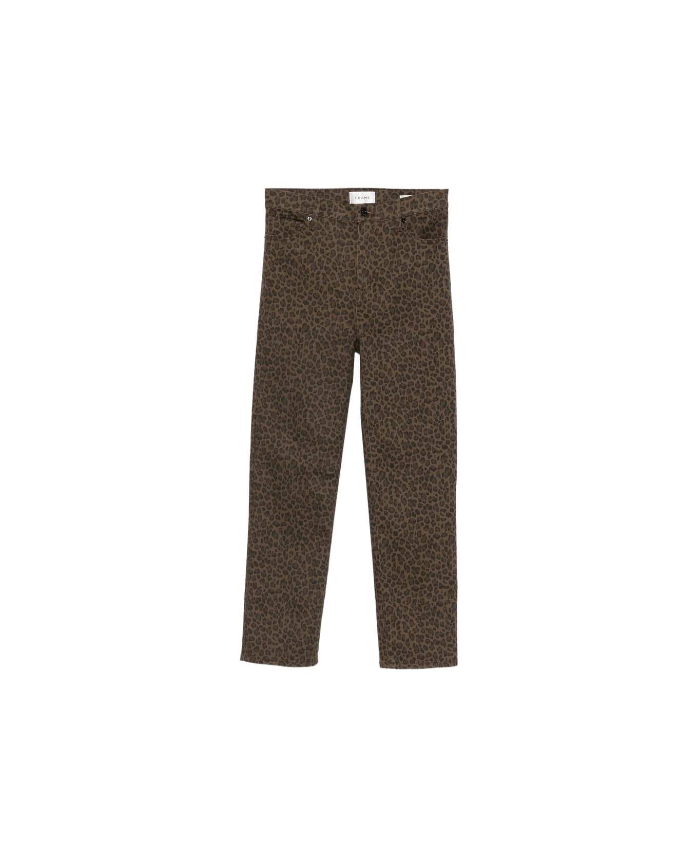 brown leopard print five-pocket styling button fly straight leg mid-rise waist