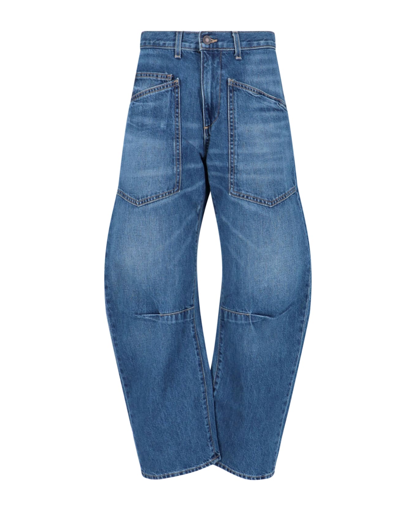 Nili Lotan 'shon' blue cotton denim jeans with mid waist, button and zip closure, five pockets design, belt loops, wide curved leg. Composition: 100% Cotton