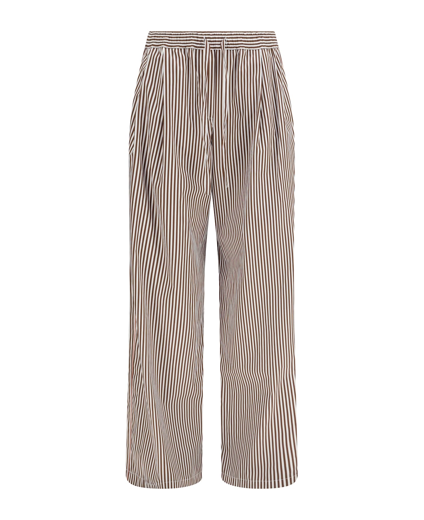 The striped poplin pants by dolce&gabbana stand out for their vibrant and contemporary aesthetic. crafted in a multicolor fabric, they feature a low-rise waist with an internal elasticated band and a matching drawstring for adjustable comfort. the double front pleats on each side add structure, while the slant pockets and back patch pocket enhance functionality. contrasting piping along the sides and pockets defines the design with a distinctive graphic touch.