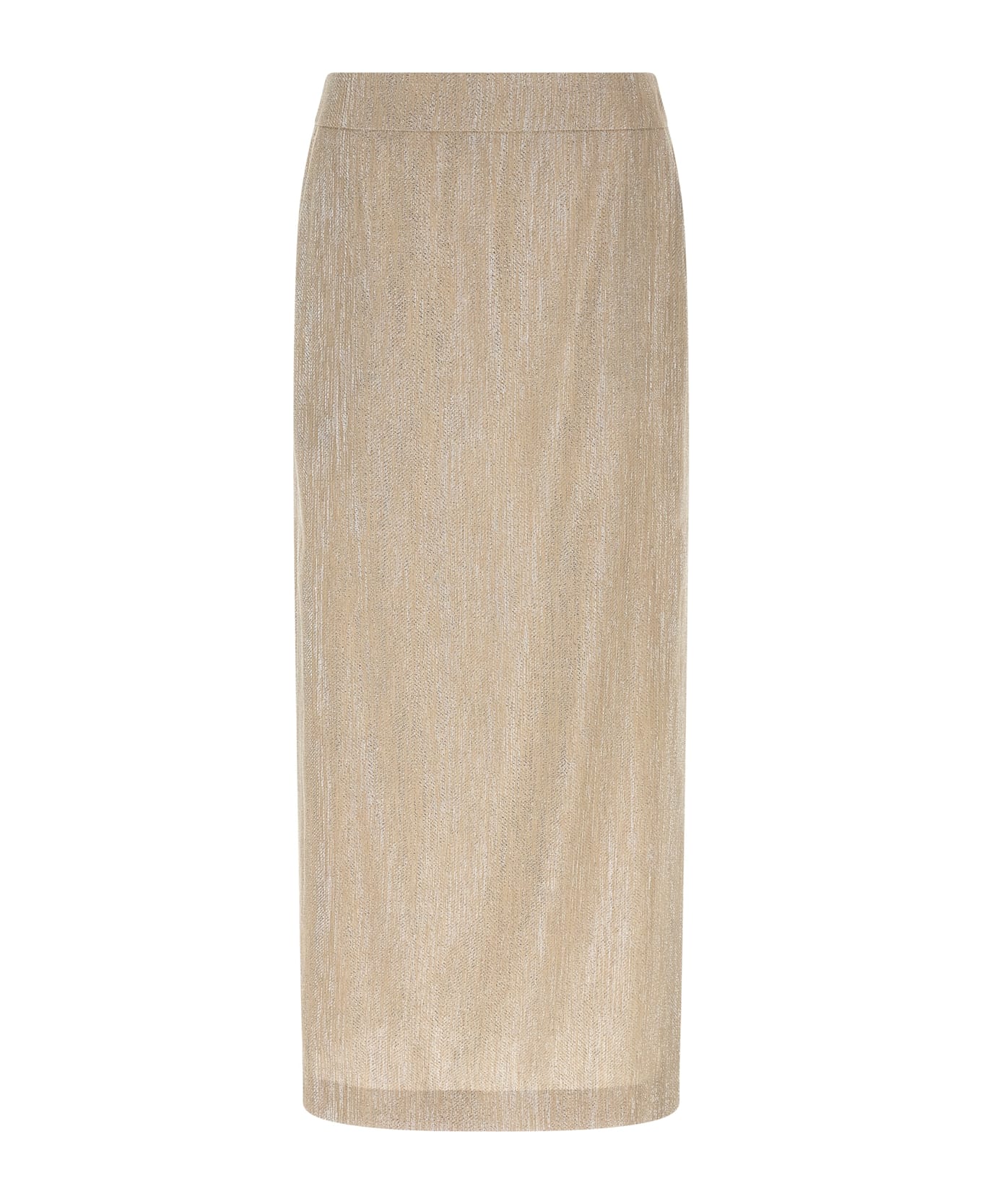 Midi skirt in viscose, linen and cotton blend with lamé thread, straight silhouette, pockets, side zip closure, wide side slits on the hem. Composition: 38% viscose 32% linen 22% cotton 5% polyester 3% polyamide
