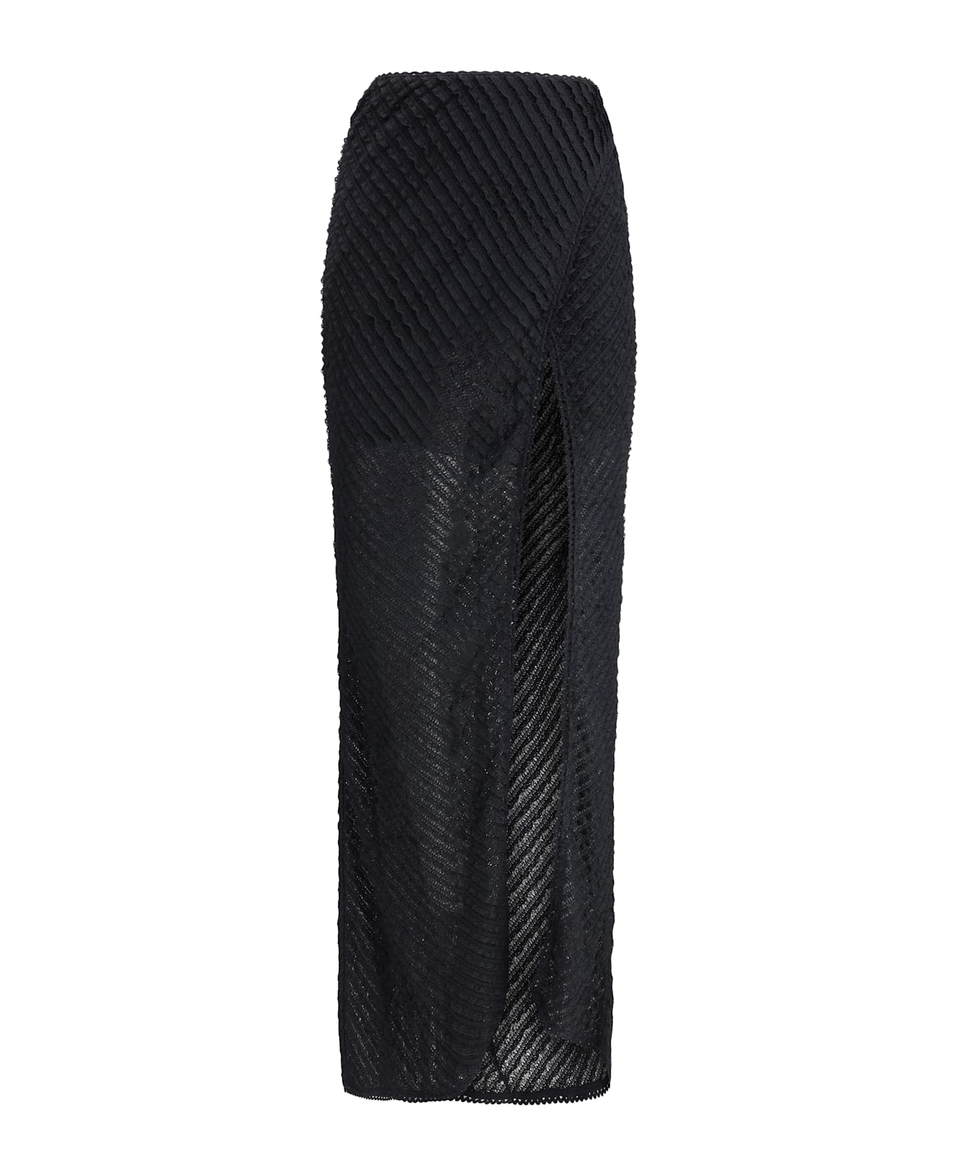 The eris long skirt by charo ruiz is made of fine stretch knit, designed to flatter the silhouette with elegance and comfort. featuring a high waist with an elastic band and a side slit, it combines femininity and practicality in a sophisticated and contemporary design.