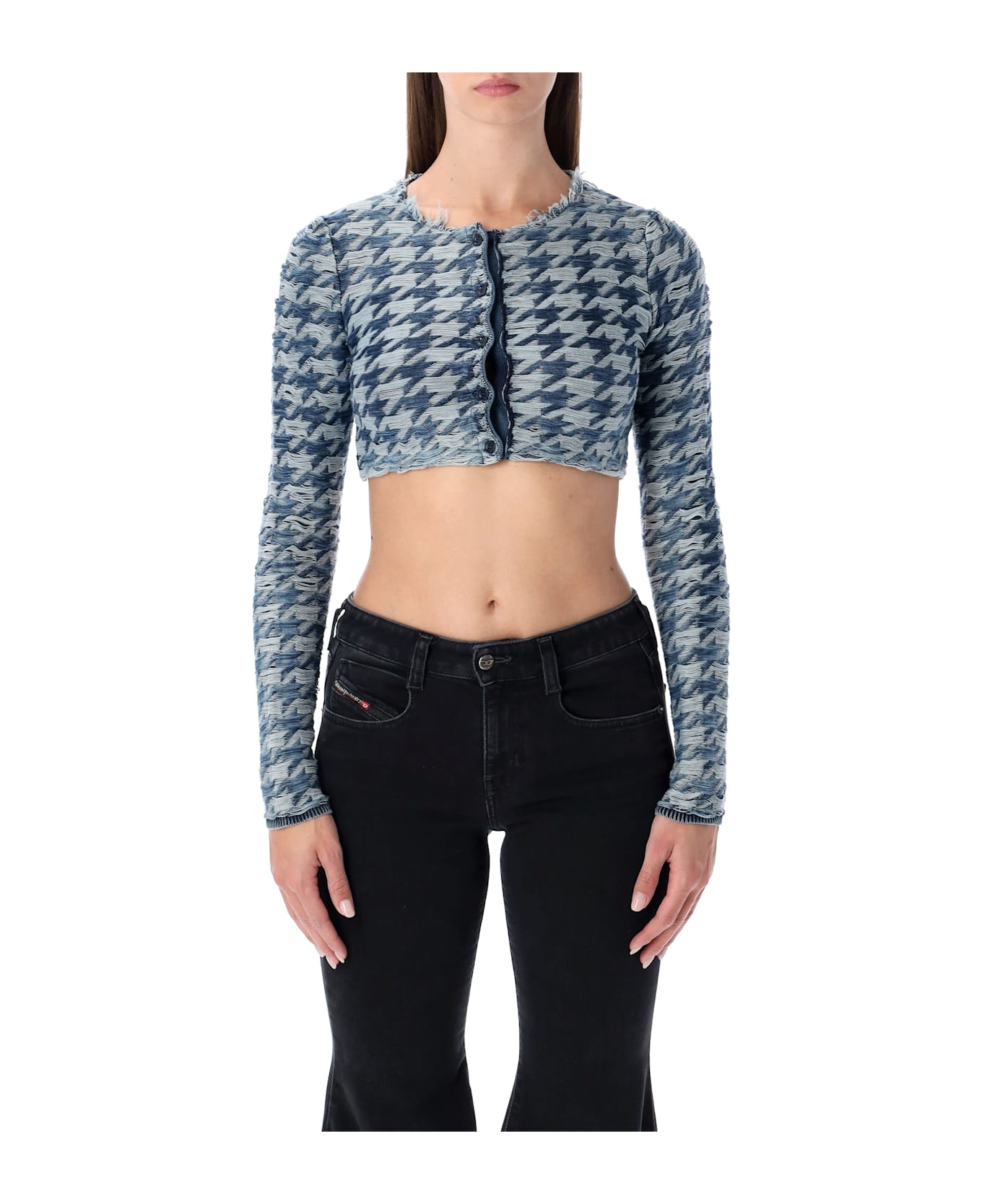 The Diesel Cropped Cardigan Captures A Bold, Youthful Attitude. Crafted From Stretch Fabric With A Faded Houndstooth Pattern, It Features A Slim Fit, Scalloped Trim, And Front Button Fastening. Its Cropped Silhouette Adds A Modern Edge Perfect For Pairing With High-waisted Jeans Or Statement Streetwear Looks. Stretch Fabric With Laddered Houndstooth Motif Round Neckline With Fringed Edges Front Button Closure Slim Fit Cropped Length Alessandra Is 1,75 M And Wears Size S